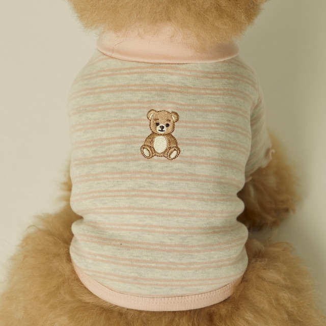 予約[thesallyslaw]pink bear high neck shirts (pink stripe)