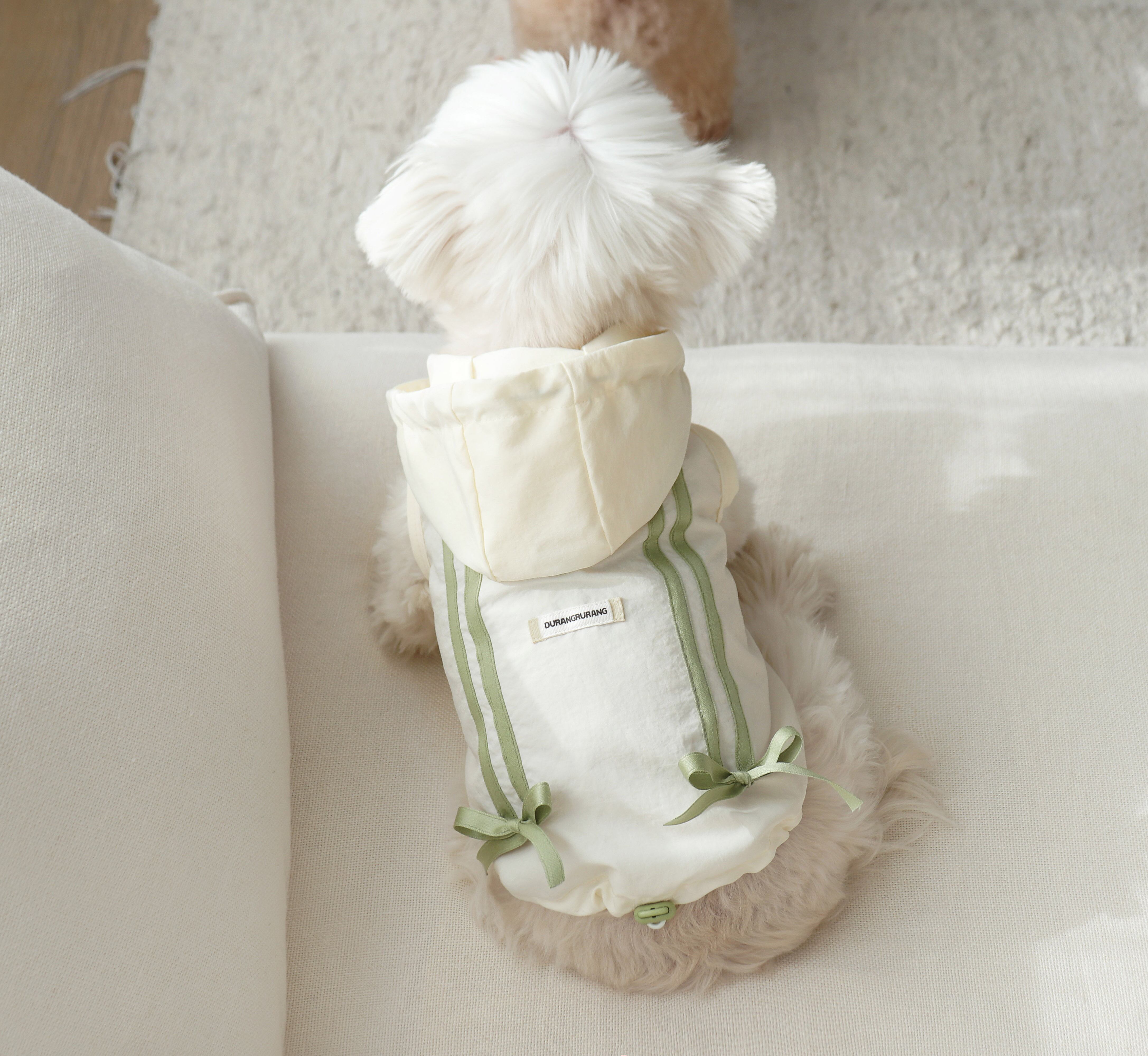 ライン付きの配色リボンは独特で感性的なポイントになります。 フード固定スナップ、リードホール、フード&ヒップゴムひもストッパーなど
