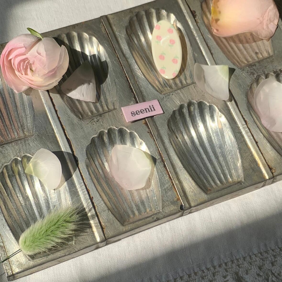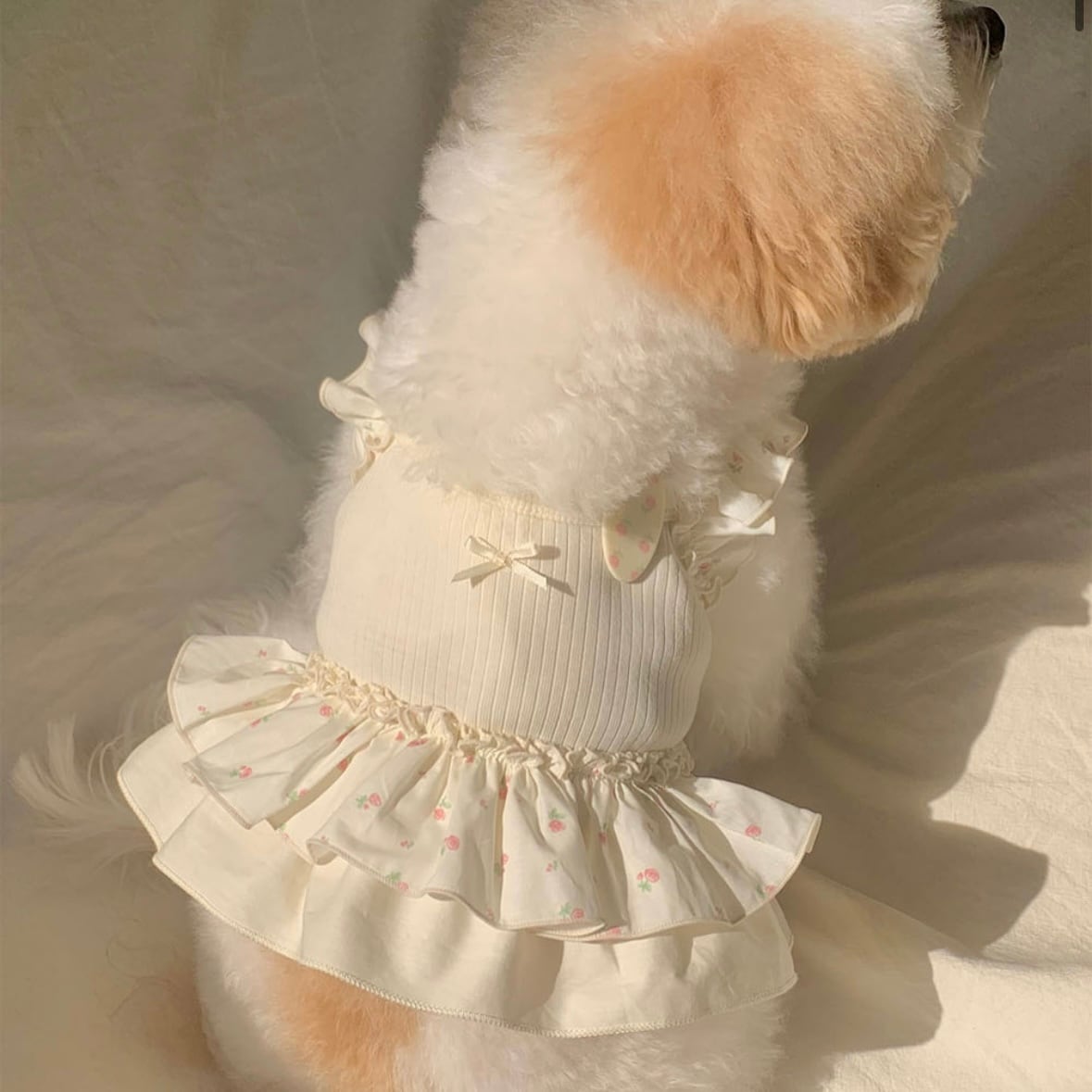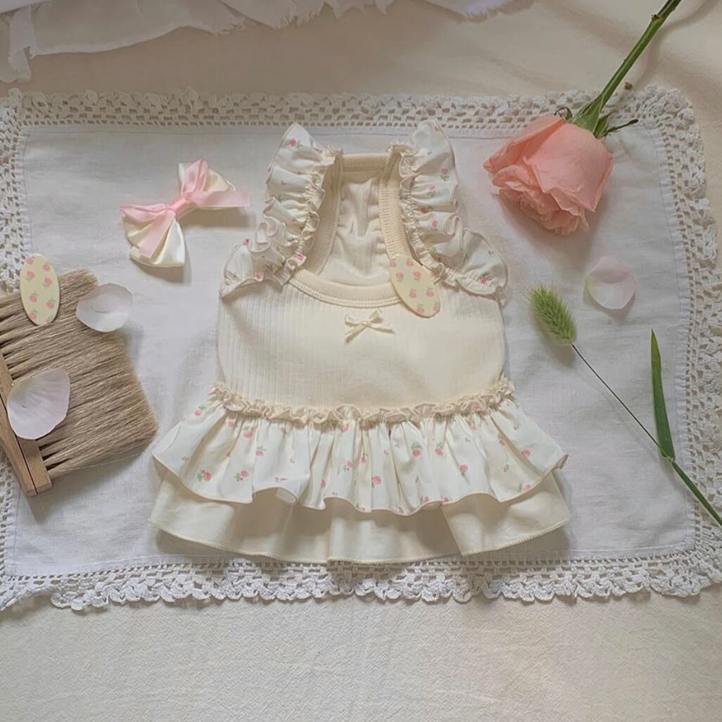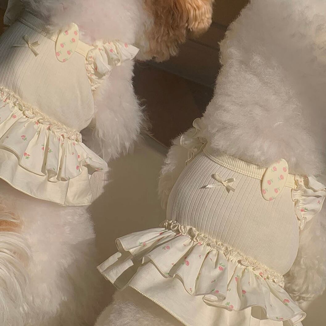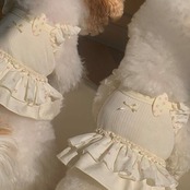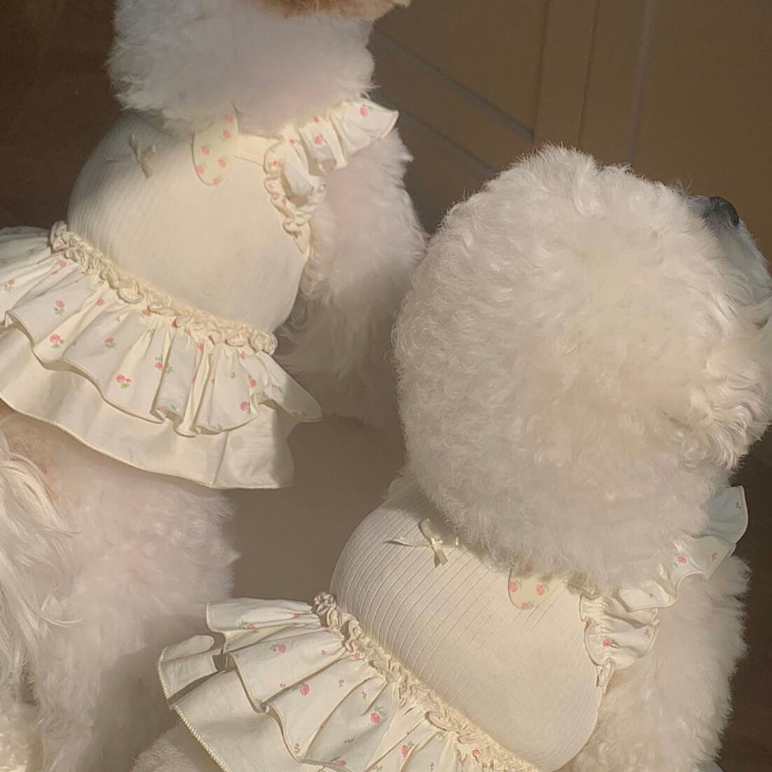 柔らかいクリーム色に小さな花びら、かなりきれいな模様、 フリルと微妙なミニリボンのディテールをカット