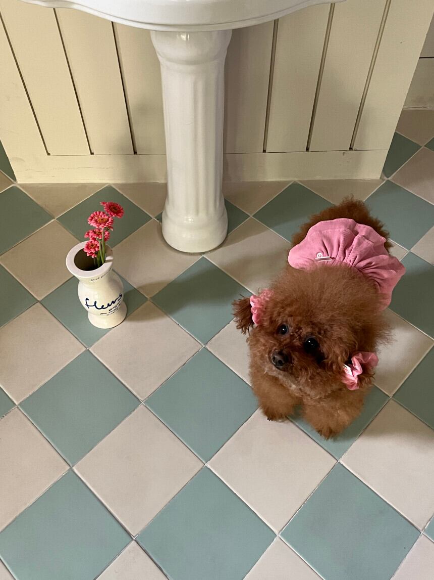 シュシュのカラーもとてもきれいに仕上がっているので、飼い主様と一緒に