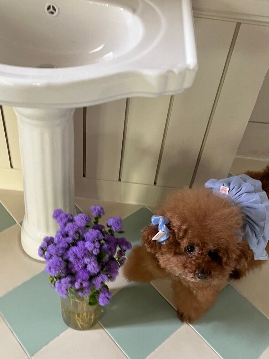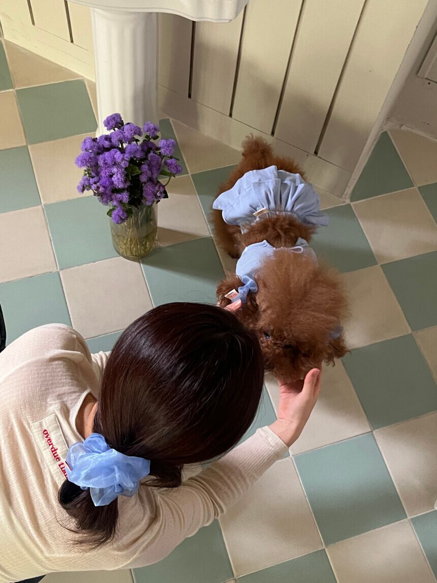 シュシュのカラーもとてもきれいに仕上がっているので、飼い主様と一緒に