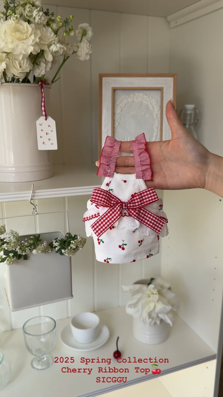 即納【SICGGU】Cherry Ribbon Top
