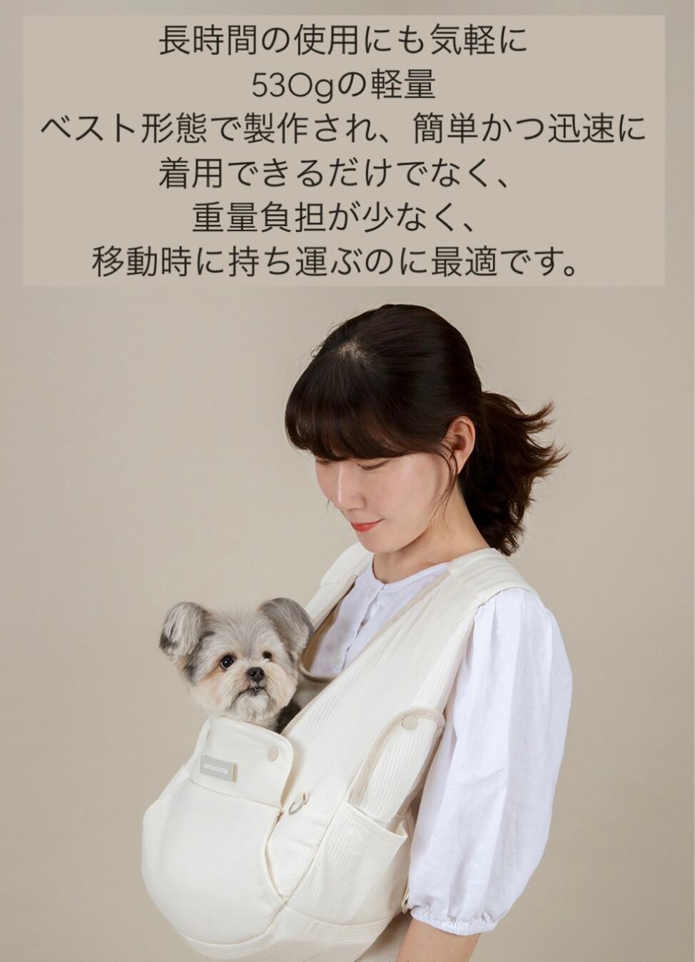 重量は4kg未満のペットまでのご使用をお勧めします。 移動中にペットの体が大きければ、視界の妨げになる可能性があります。ご注意ください。