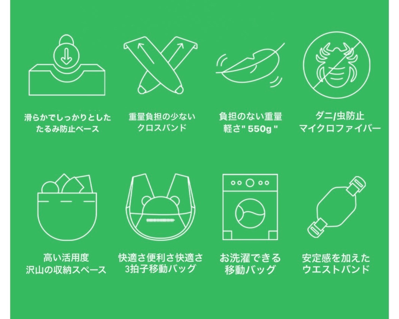 保護者のことを考えた重量負担の少ない550gの超軽量クロスバンド 移動バッグは長時間ご利用の際にも