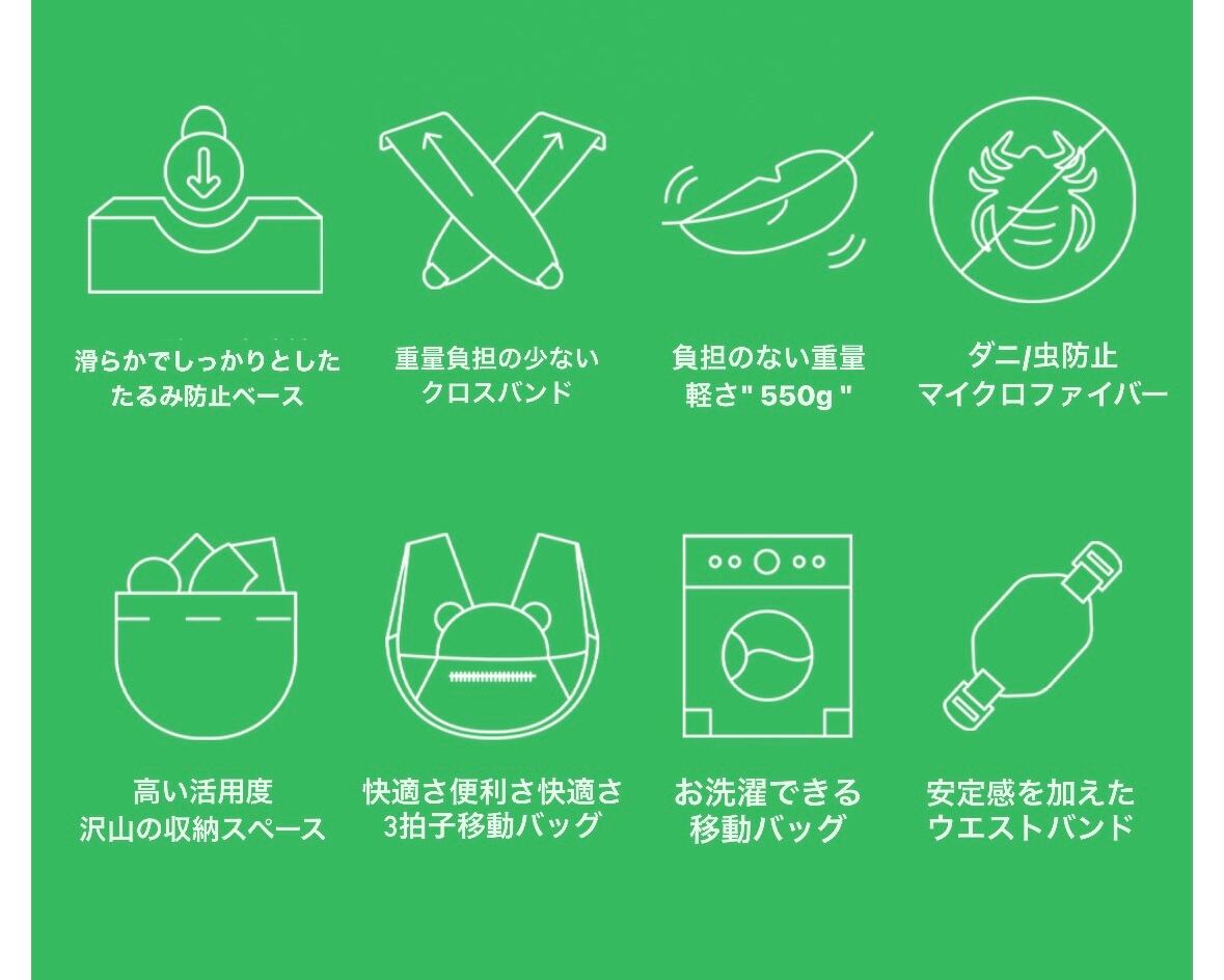 4kg〜の子に使用する場合は腰への負担を考慮し、ウエストバンドの使用をおすすめします。