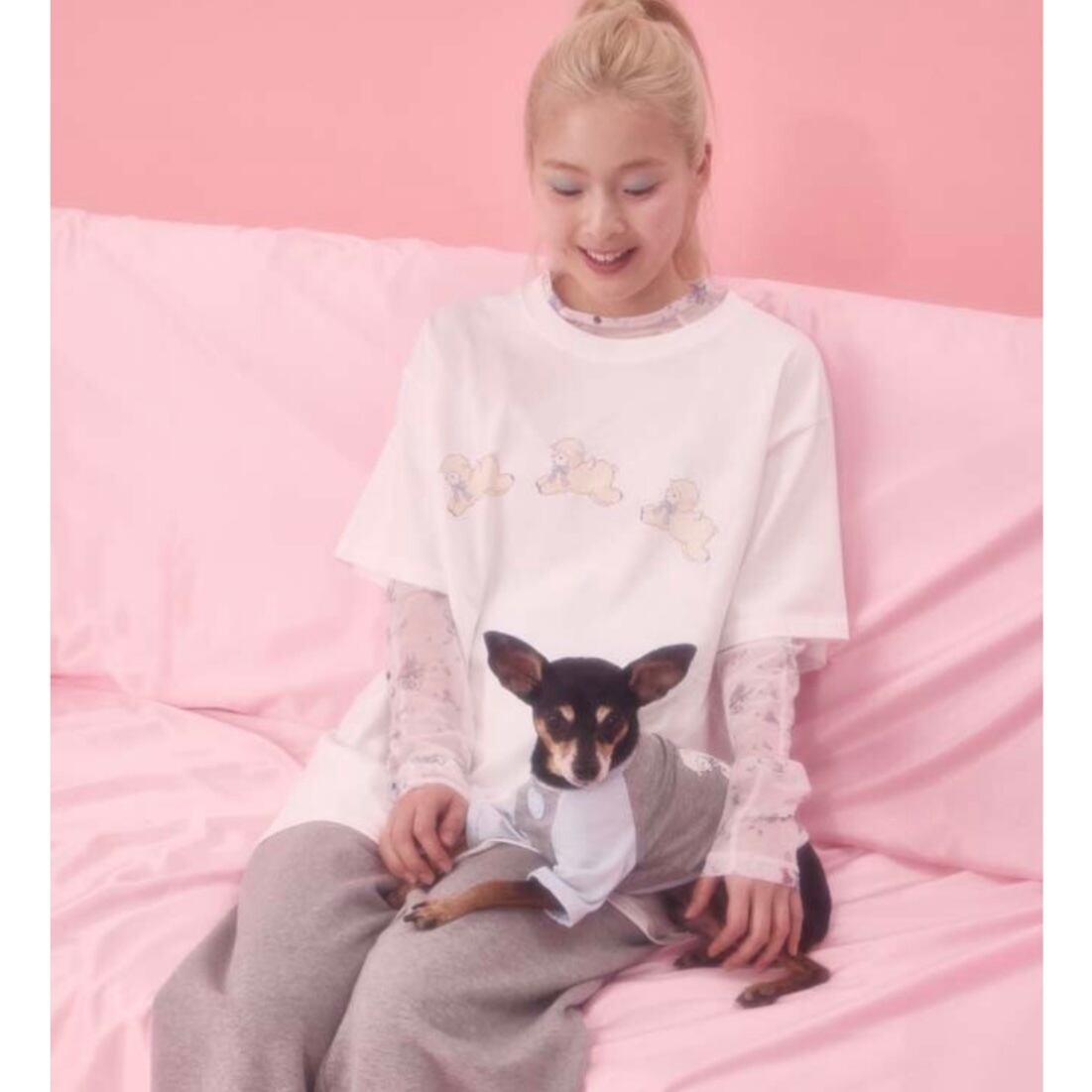 S/M即納[pebs][PEBBLES x MABLING] BELL RAGLAN TEE