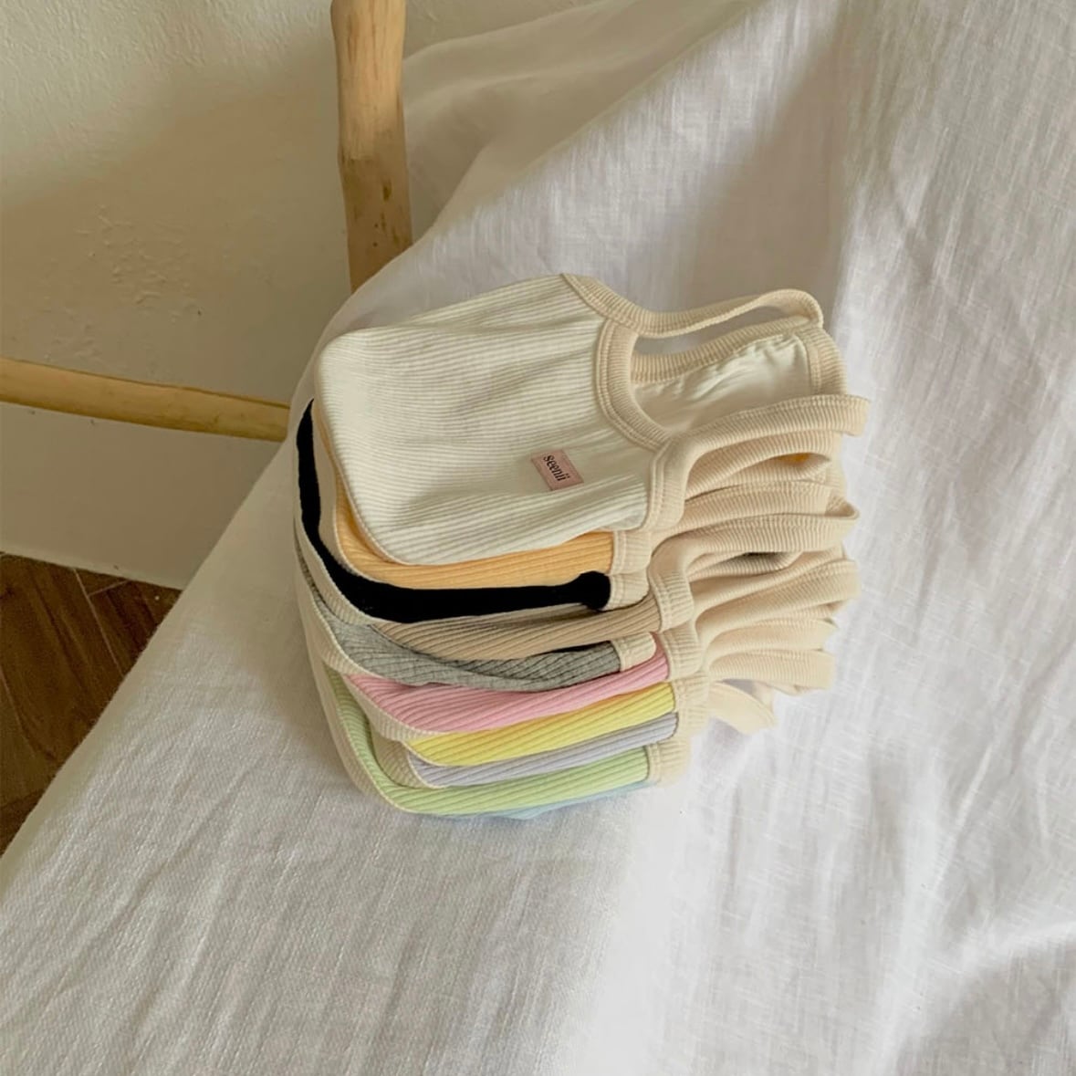 薄くて軽い綿スパン生地で着心地がとても楽でピンクのブランドタグがポイントのベーシックトップス