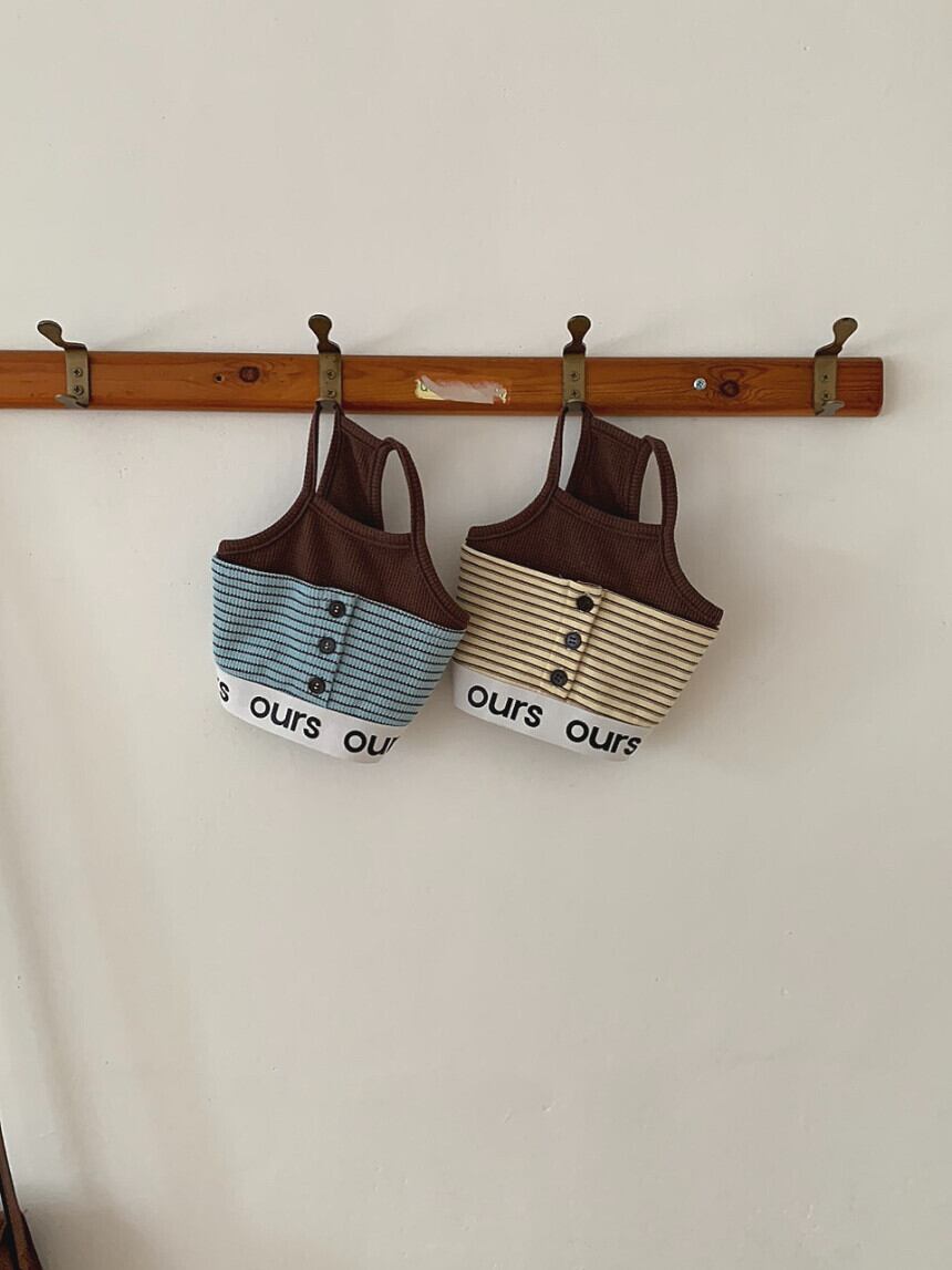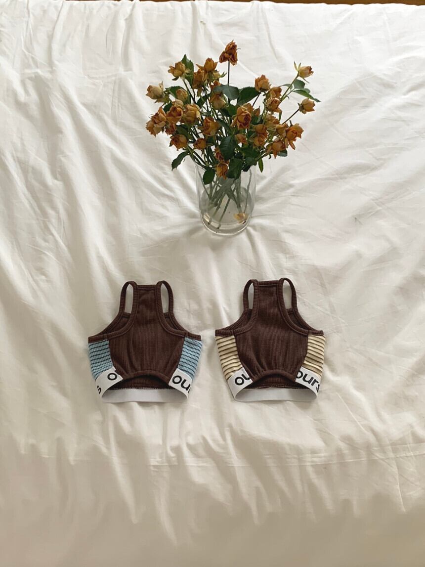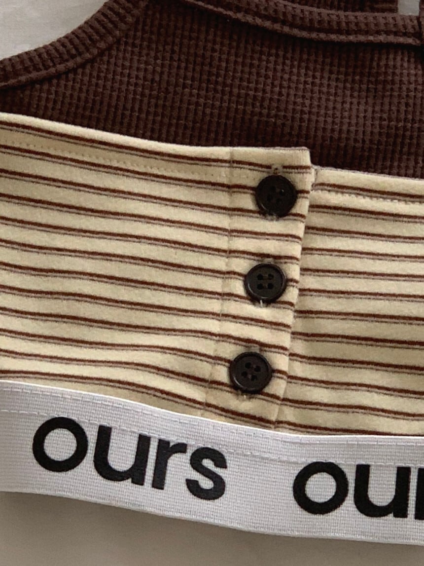 見た目はブラウンのノースリーブの上に他のカラーを重ねて着ているようですが、