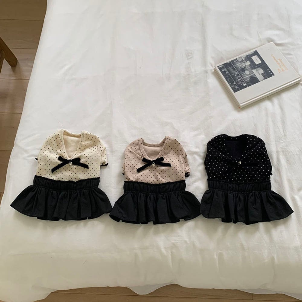 即納【korea select】velvet dot ribbon one-piece(3color)