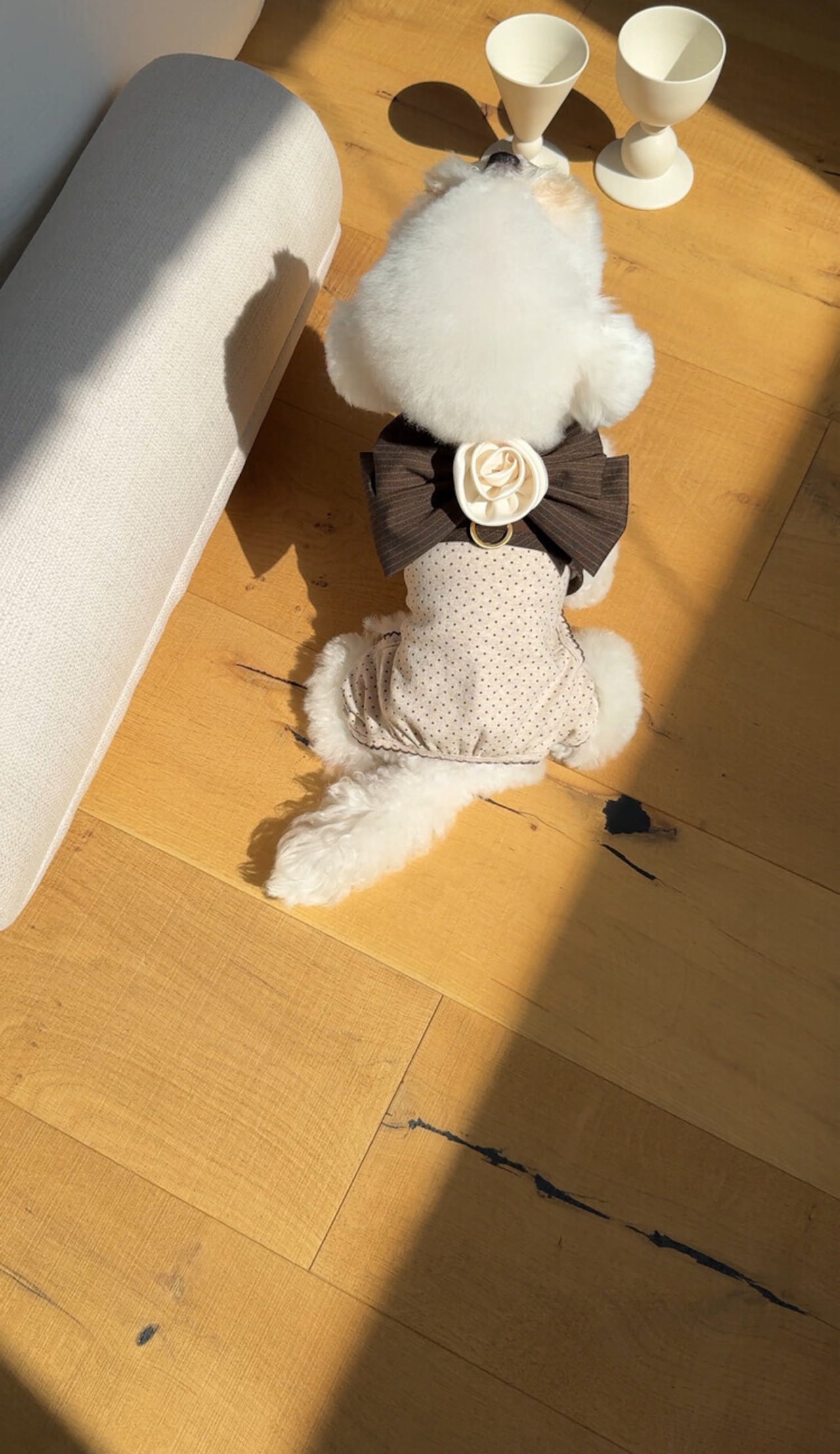 ワンちゃんの体に合わせてサイズを調整し、ベルクロを留めてください。