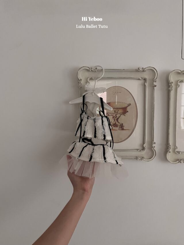 肩の長いリボンディテールで優雅なシルエットを強調しました。 スカートの内側にはチューチューを重ね合わせてバレエチューチューの感性を生かし、
