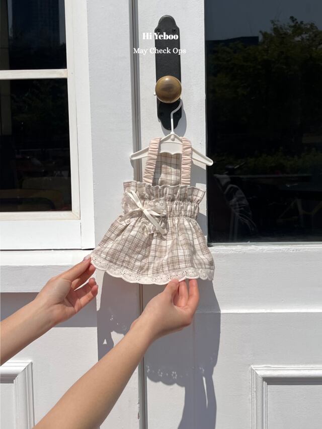 クラシックに溌剌さを加える。 アイボリーフリルディテールが引き立つブラウンチェックワンピースで