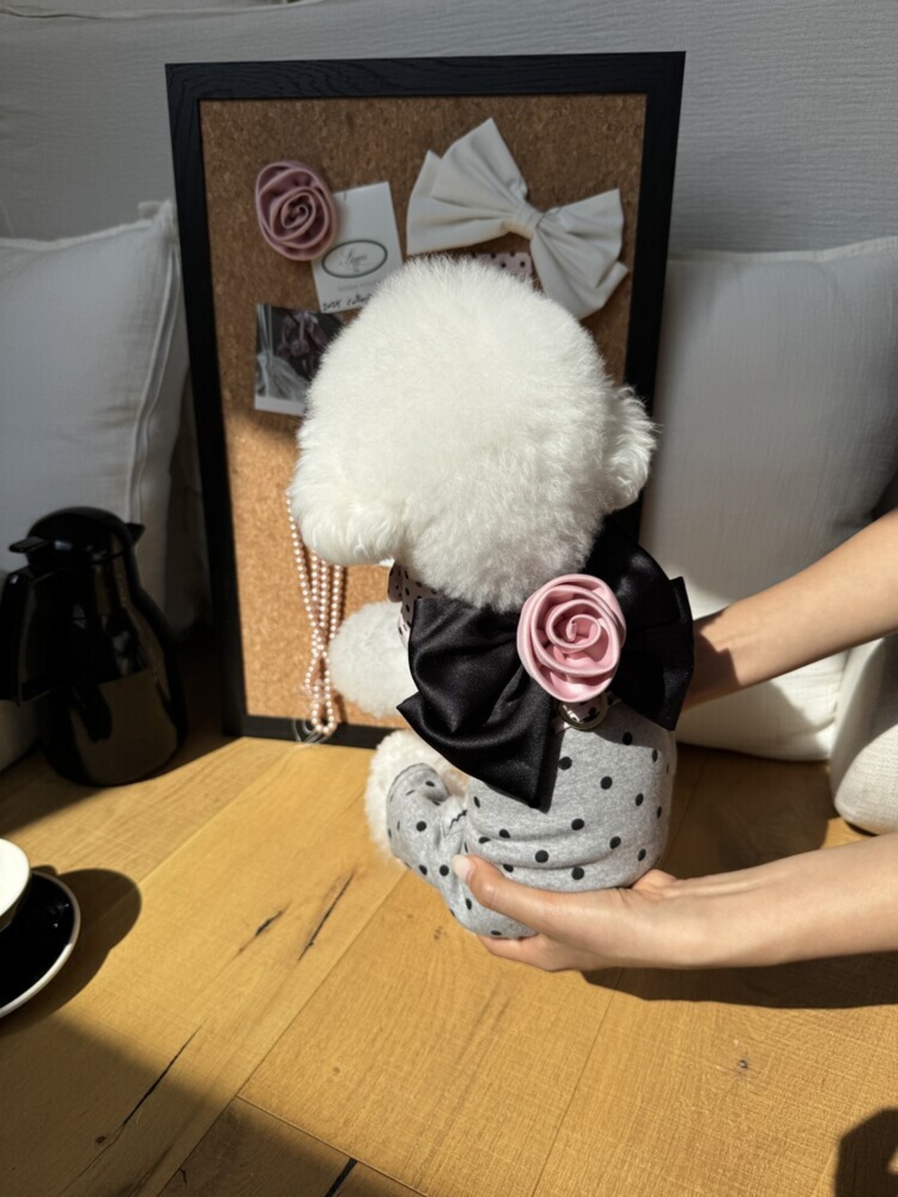 ワンちゃんの体に合わせてサイズを調整し、ベルクロを留めてください。