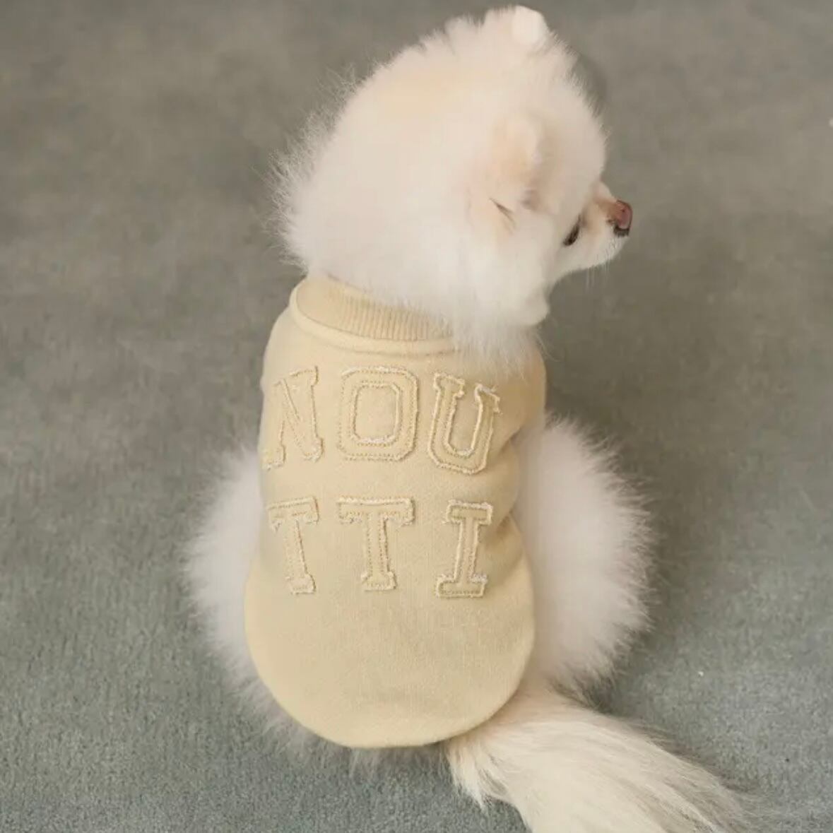 ネックラインの内側には、ヌービーのロゴプリントテープですっきり仕上げました。