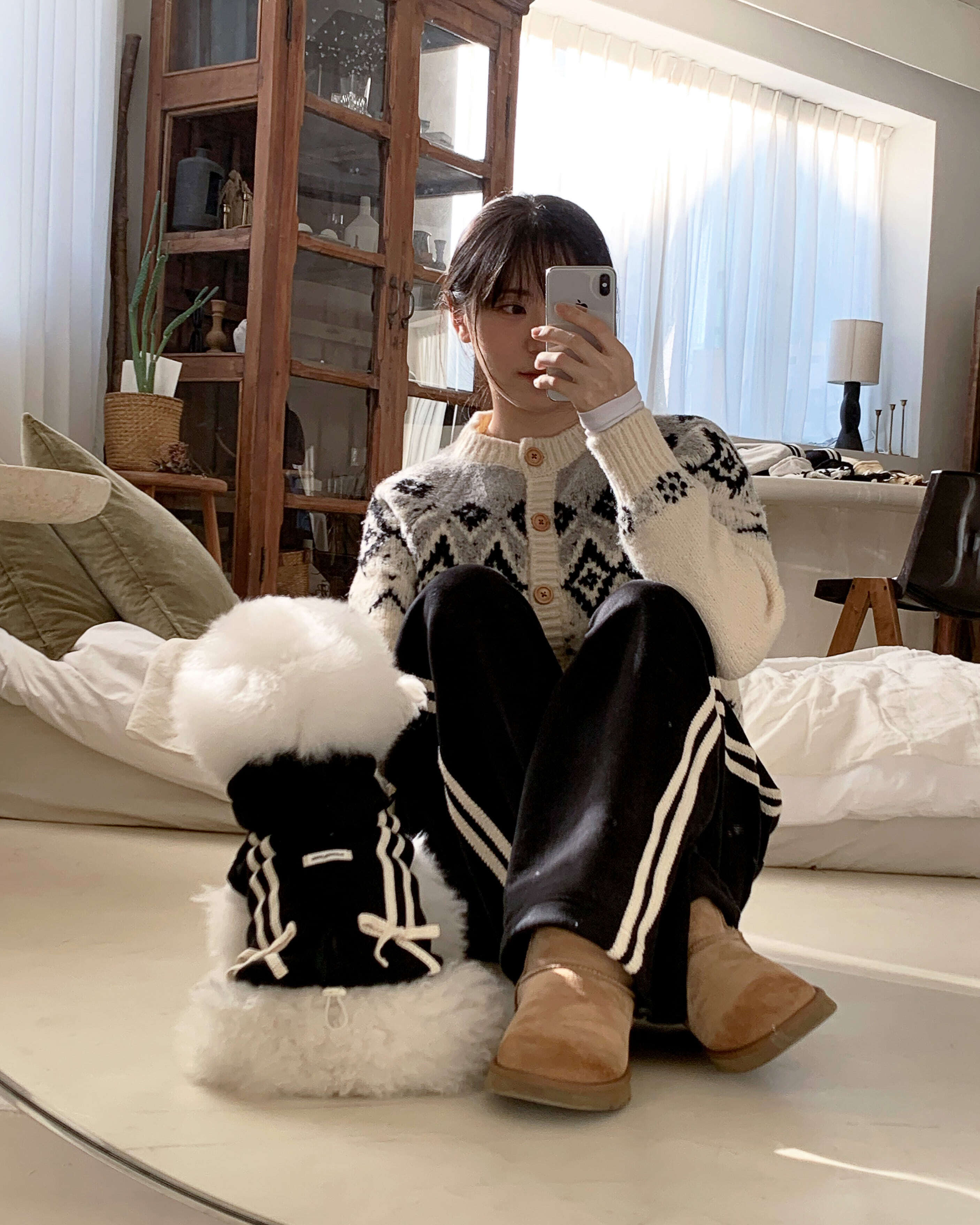 ライン付きのニットリボンは独特で感性的なポイントになります。