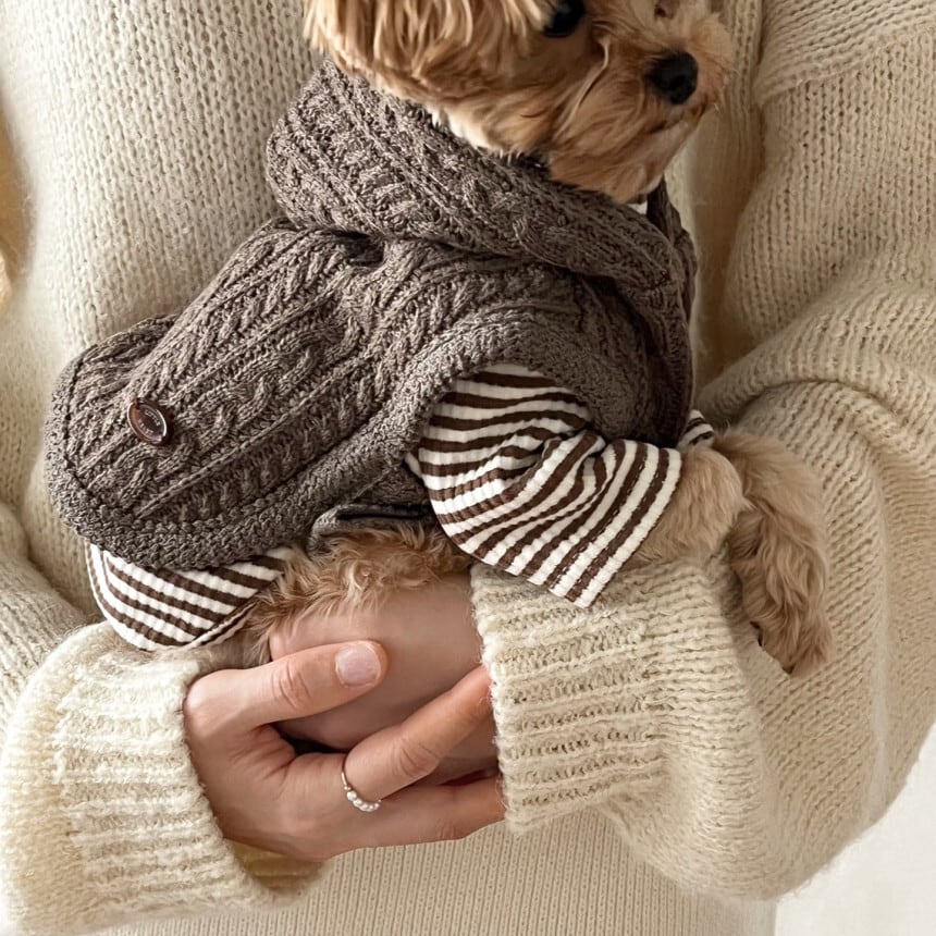 ふんわりとしたニットの組み合わせに厚みがあり