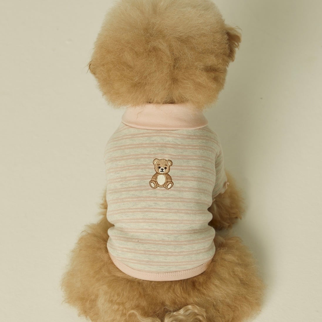 予約[thesallyslaw]pink bear high neck shirts (pink stripe)