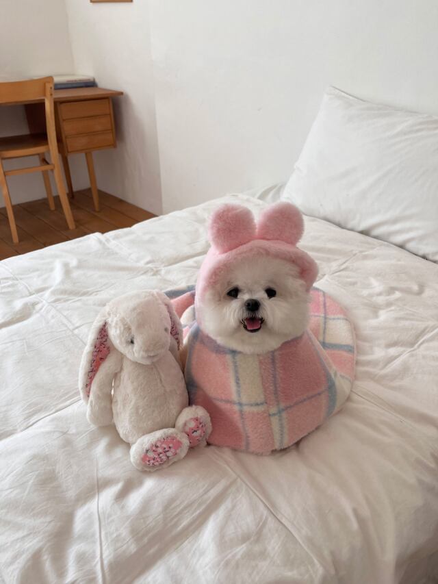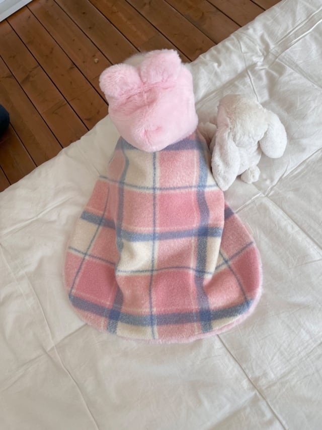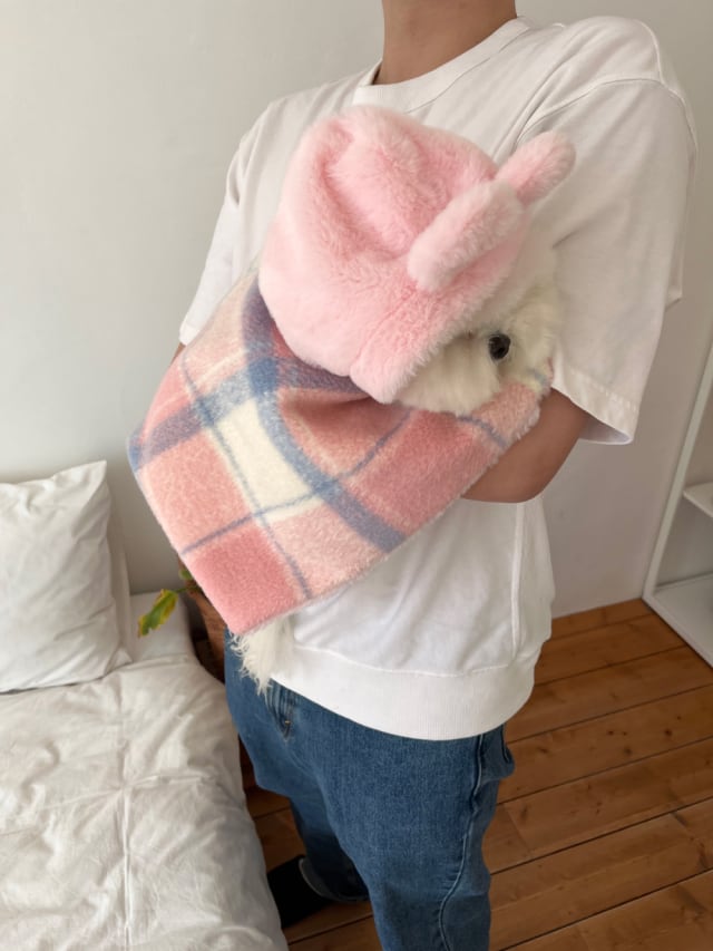 予約[Hi yeboo]wool check blanket cape( pink bear)