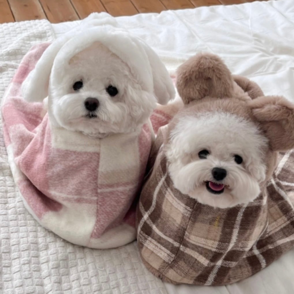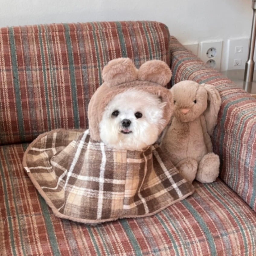予約[Hi yeboo]wool check blanket cape(brown bear)
