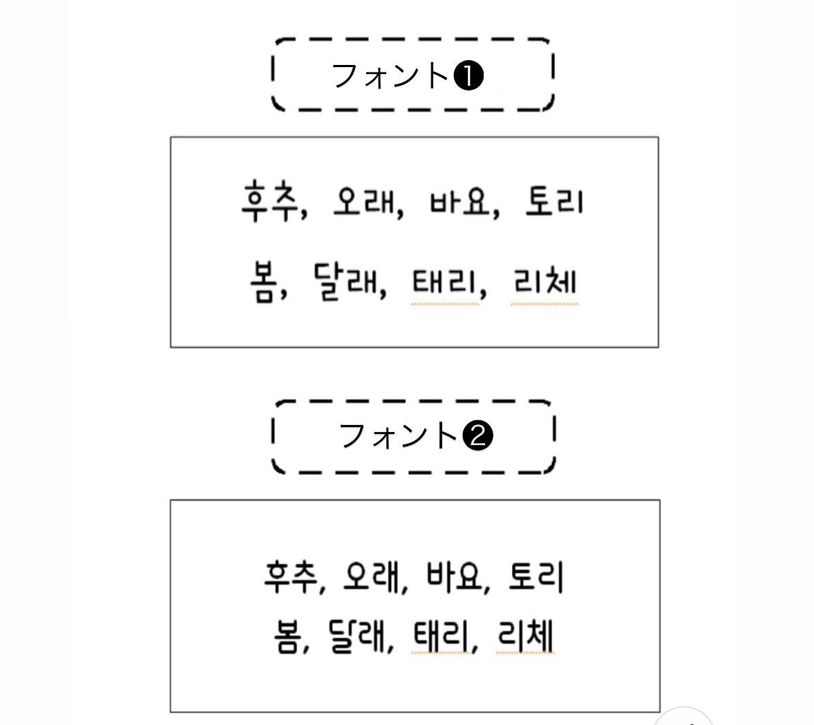 ハングルの方だけフォント❶か❷お選びください
