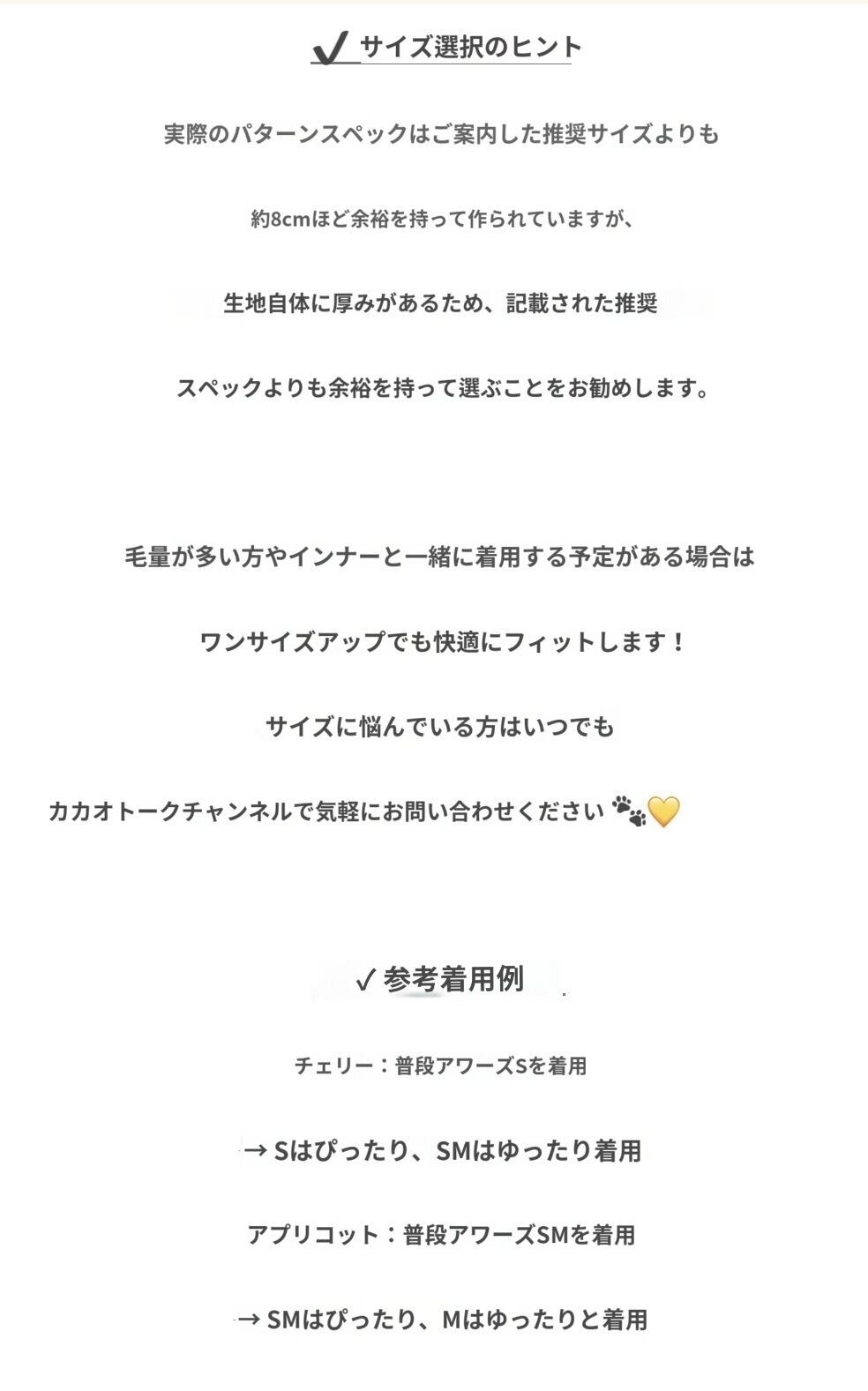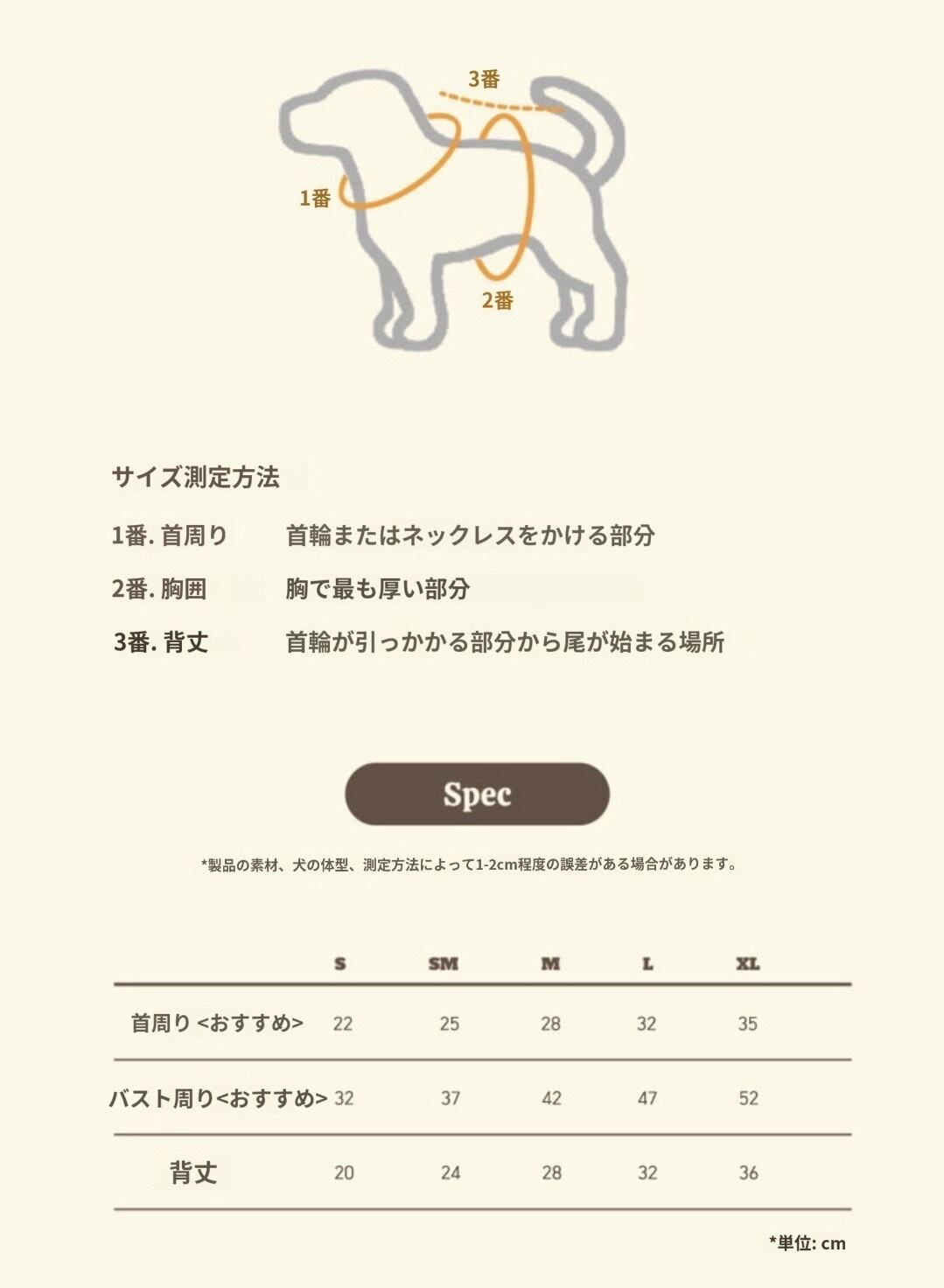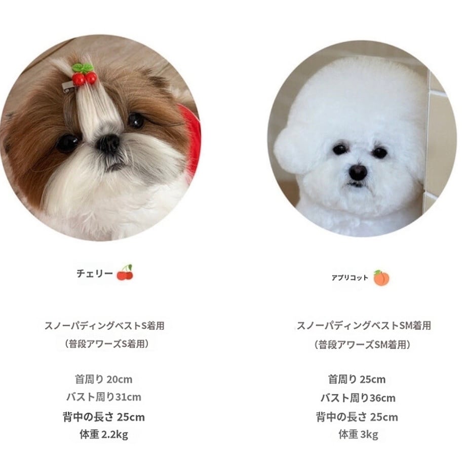 犬の体型、毛量状態、犬種、お客様(タイトさを感じる)の基準がすべて異なりますので、アワーズの詳細スペックと犬の毛量に応じて、十分に考えてからご注文いただければ幸いです。