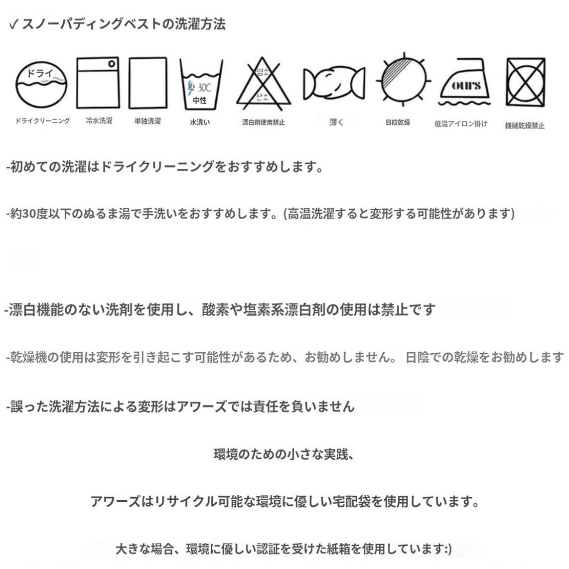 暖かさと実用性をすべて盛り込んだスノーダウンベストは、柔らかいキルティング表地に8オンスの綿がボンディングされ、軽いながらもふんわりとした着用感を誇ります。