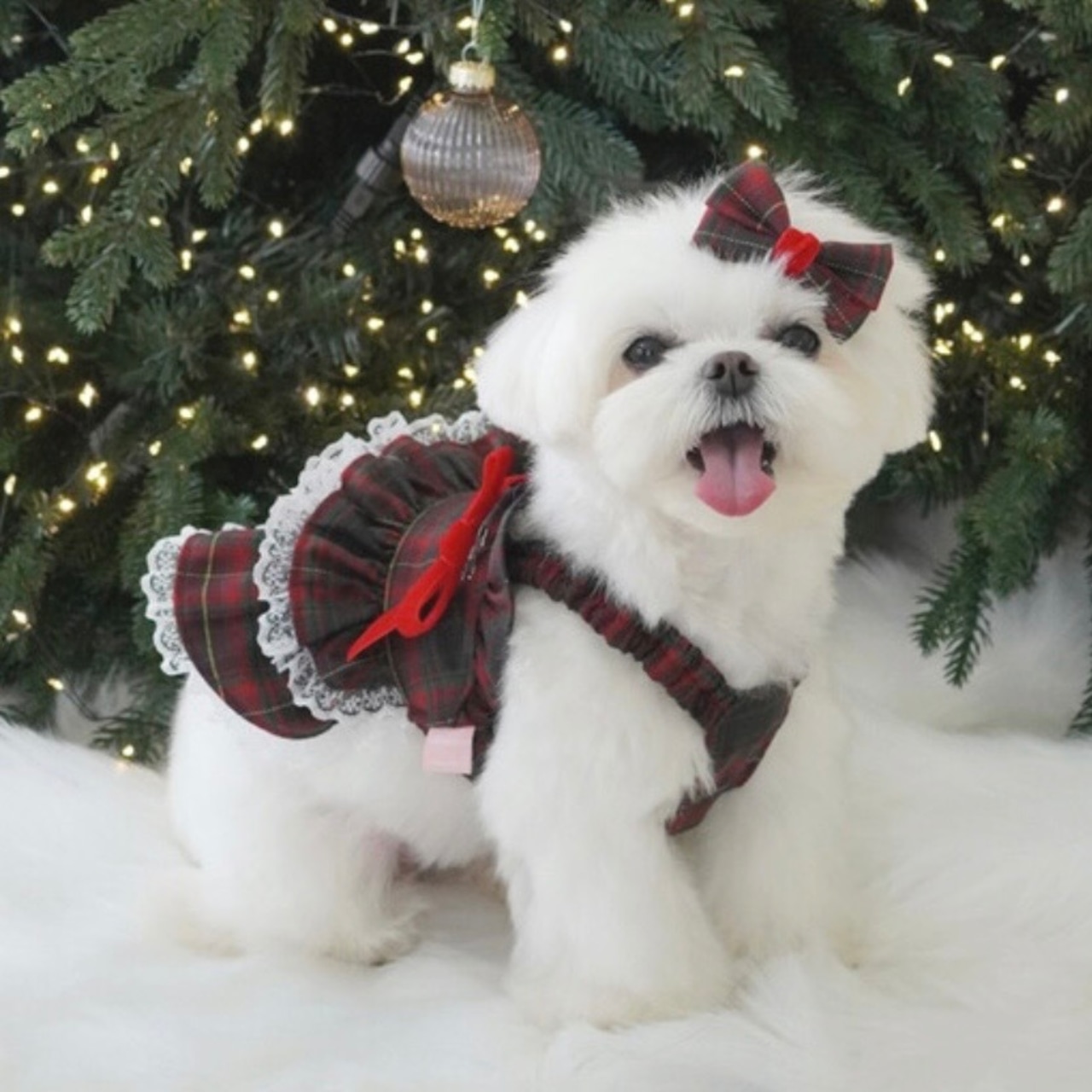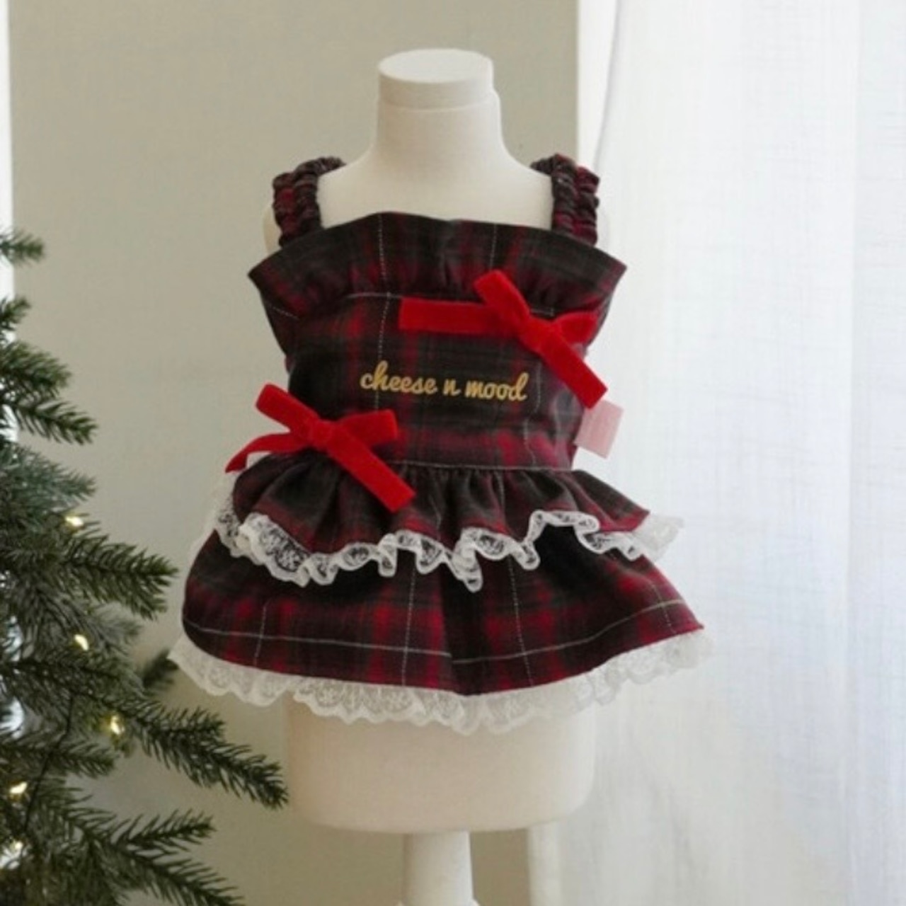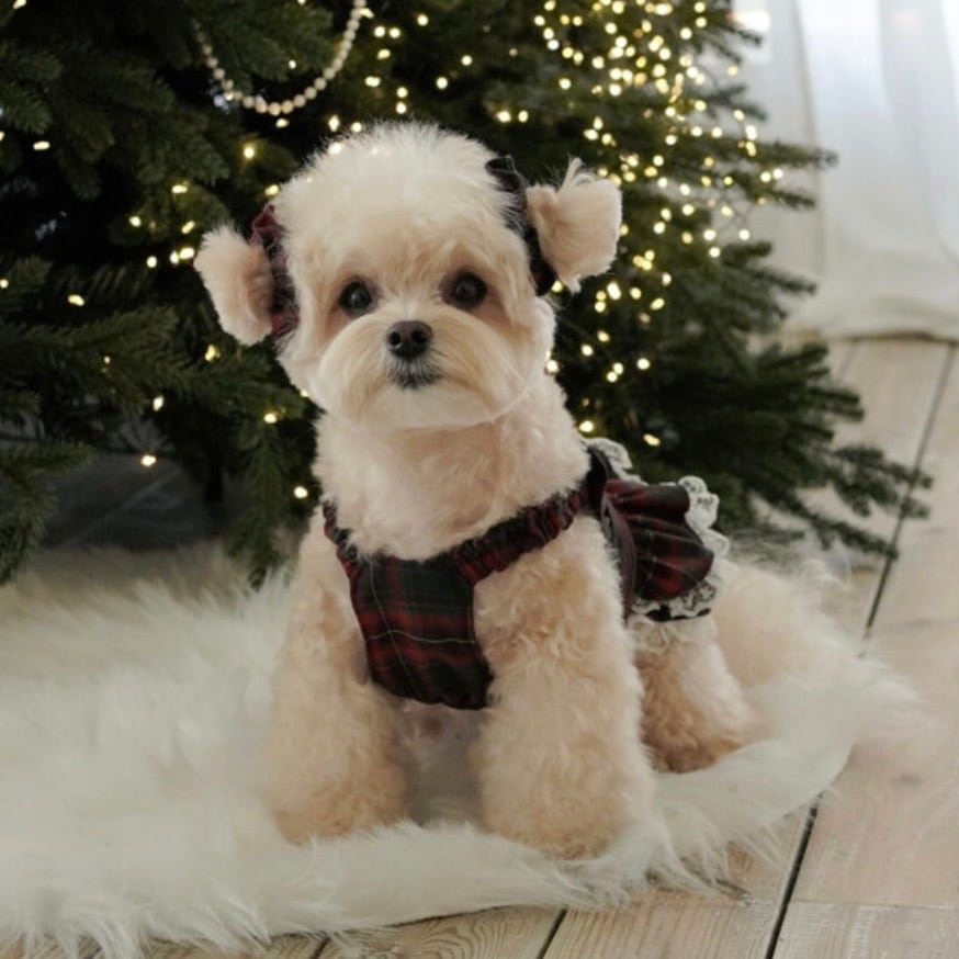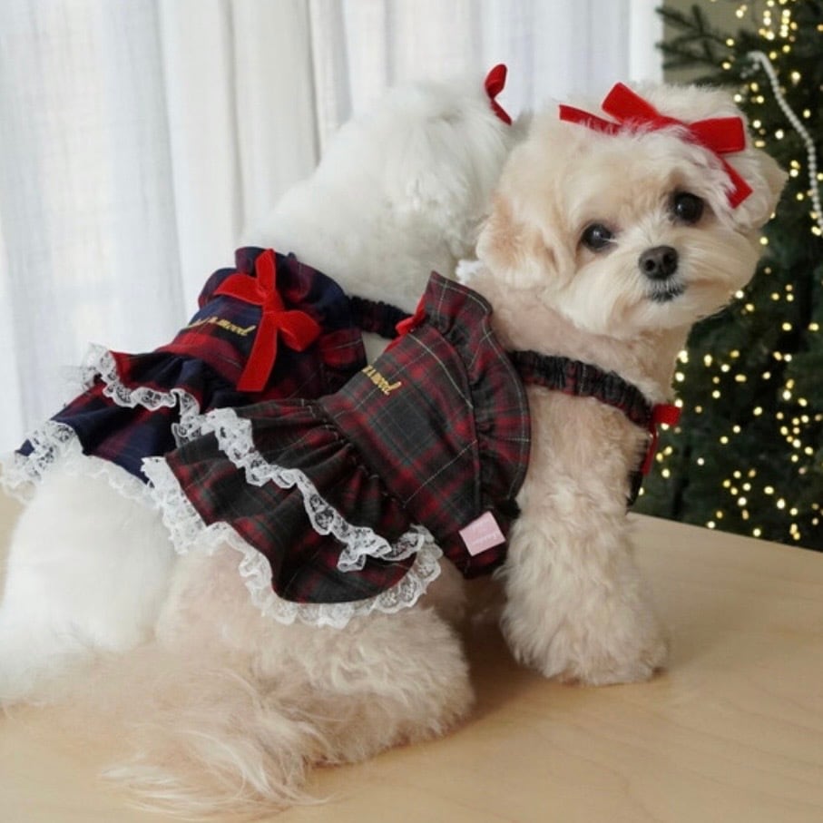 私が好きなタータンチェックの生地にレースまで入れてより愛らしく高級なデザインです