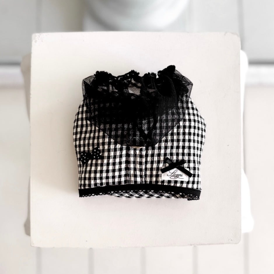 ほのかなチュールフードと小さなリボンディテールが加わり