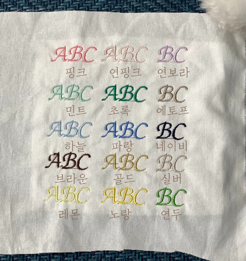 刺繍はハングル、英語、中国語、日本語が可能です!