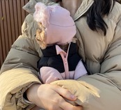 マジックテープで赤ちゃんの顔の周りに合わせて