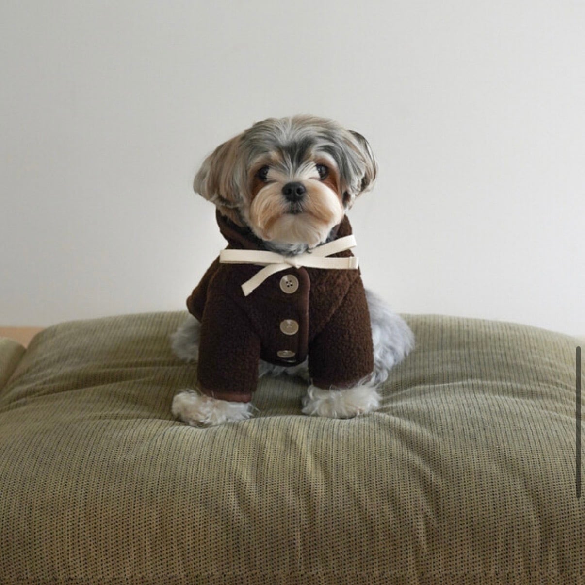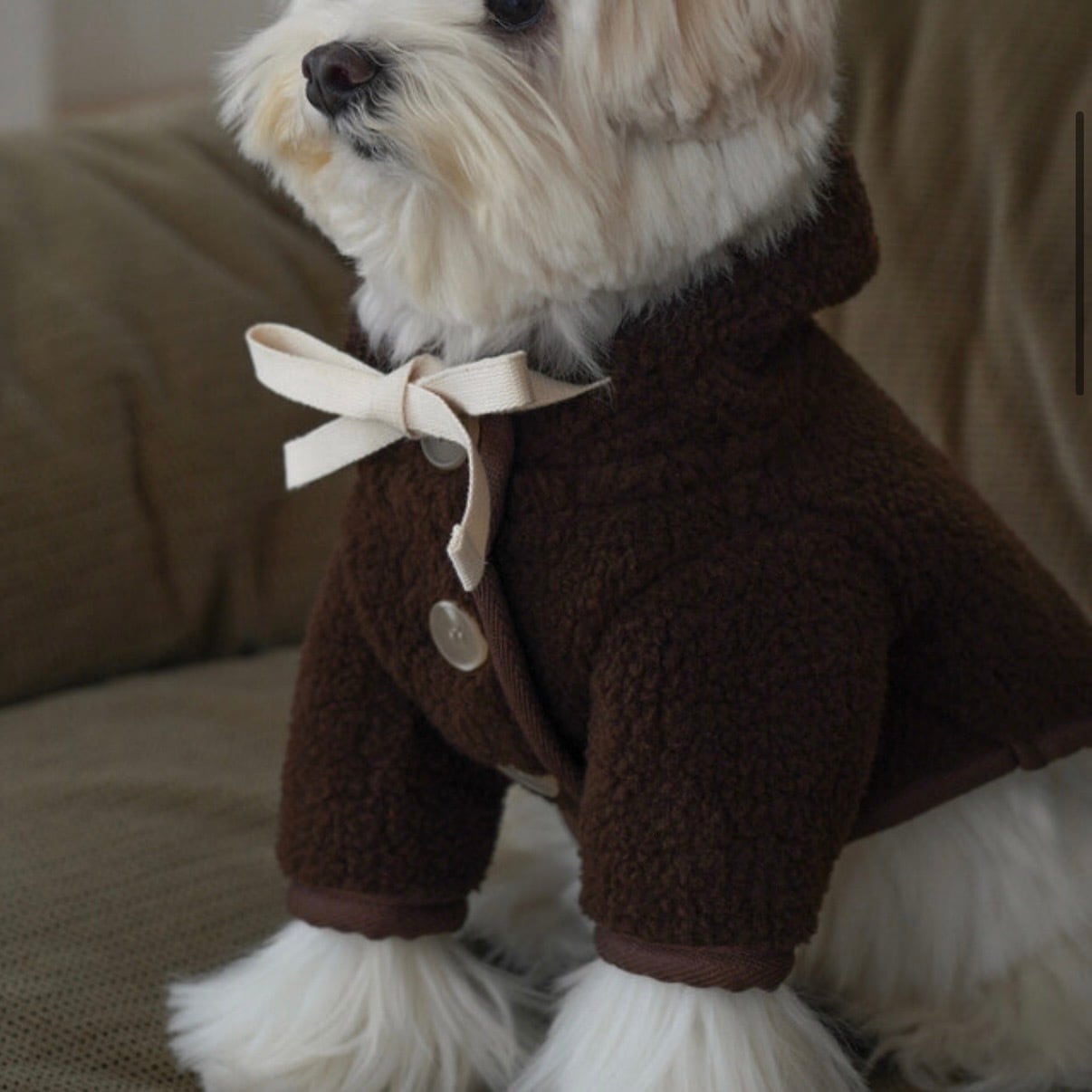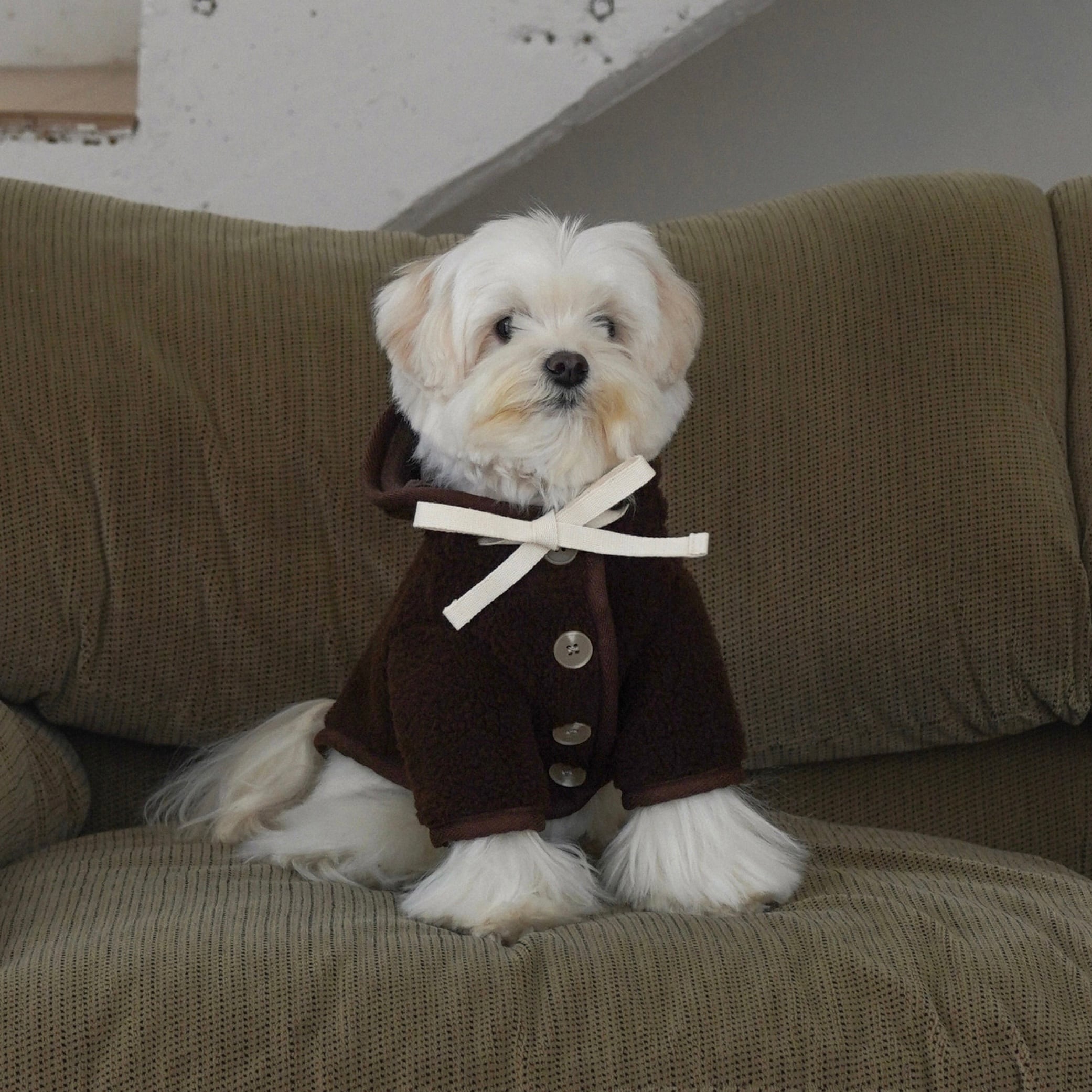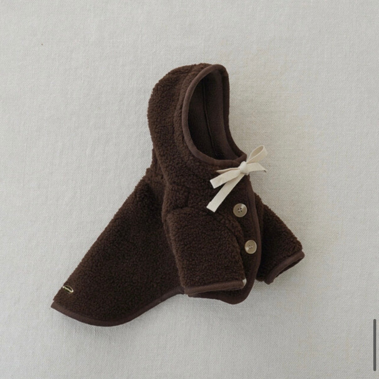 ふわふわで柔らかいシアリングフードジャケットをご覧ください。 表はモコモコなファー素材、中は保温性に優れたフリース素材で構成され、楽で愛らしいムードで毎日着られます。