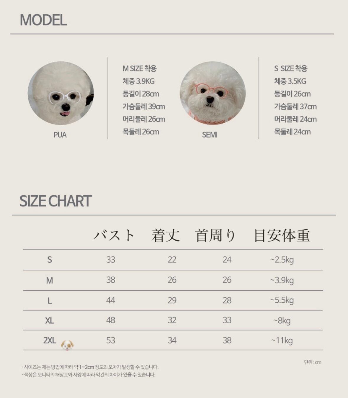 3.8kg/バスト36cm/背丈38cmMサイズ着用
