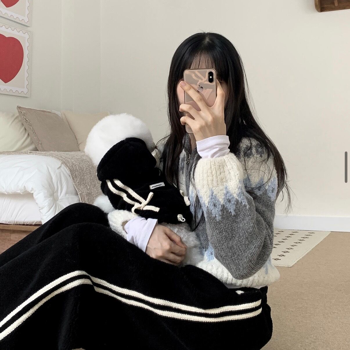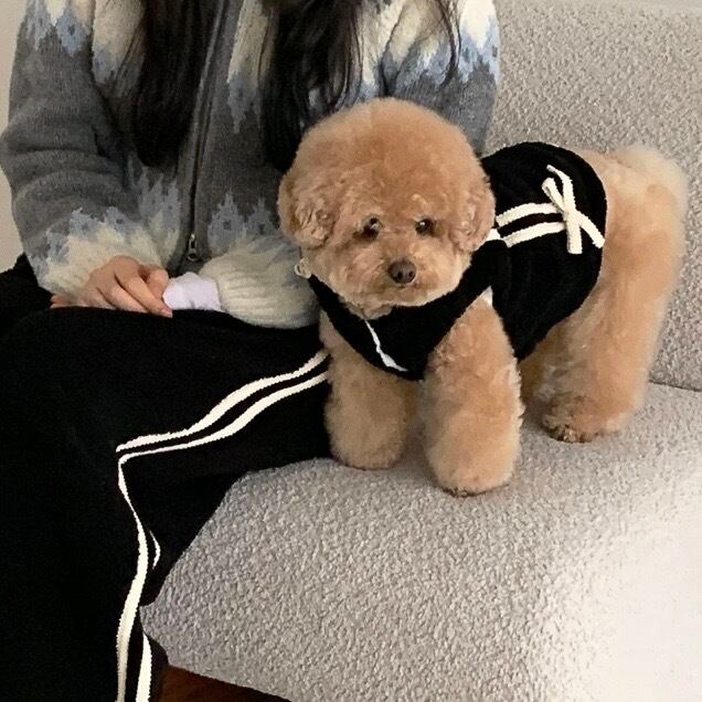 ライン付きのニットリボンは独特で感性的なポイントになります。