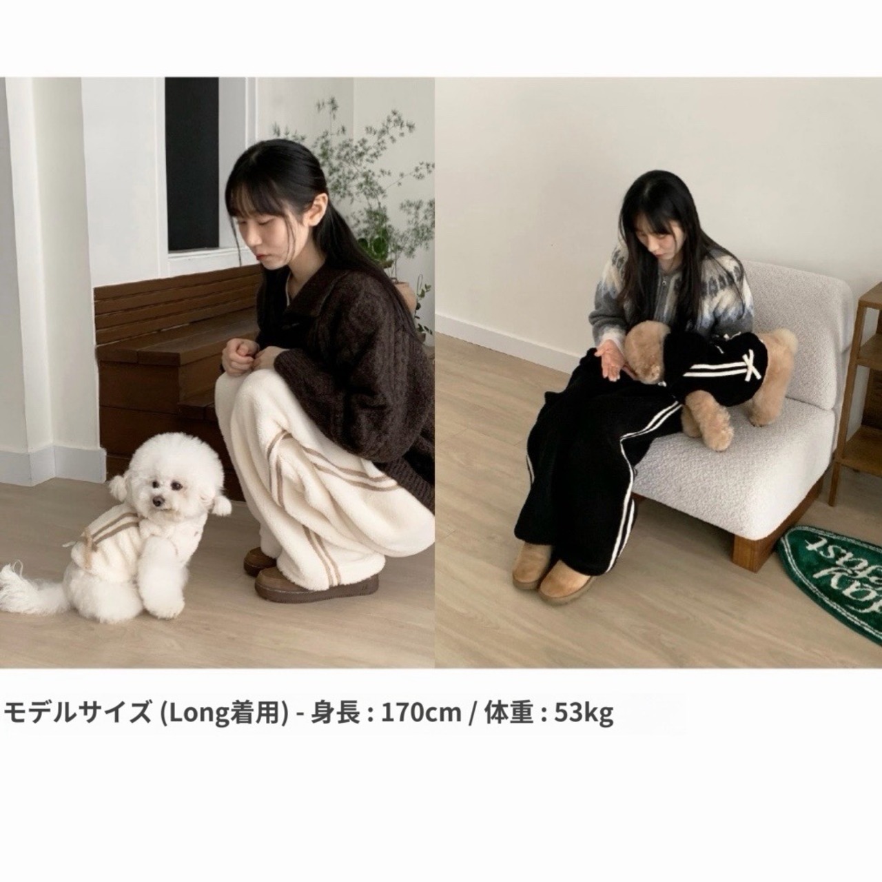 パンツペアルックなので、負担にならずにさりげなくセンスよく犬と合わせて着るのにぴったりです。