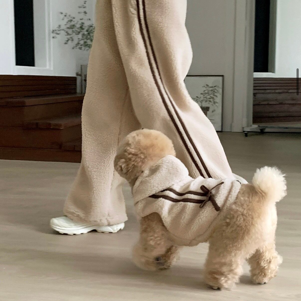 パンツペアルックなので、負担にならずにさりげなくセンスよく犬と合わせて着るのにぴったりです。