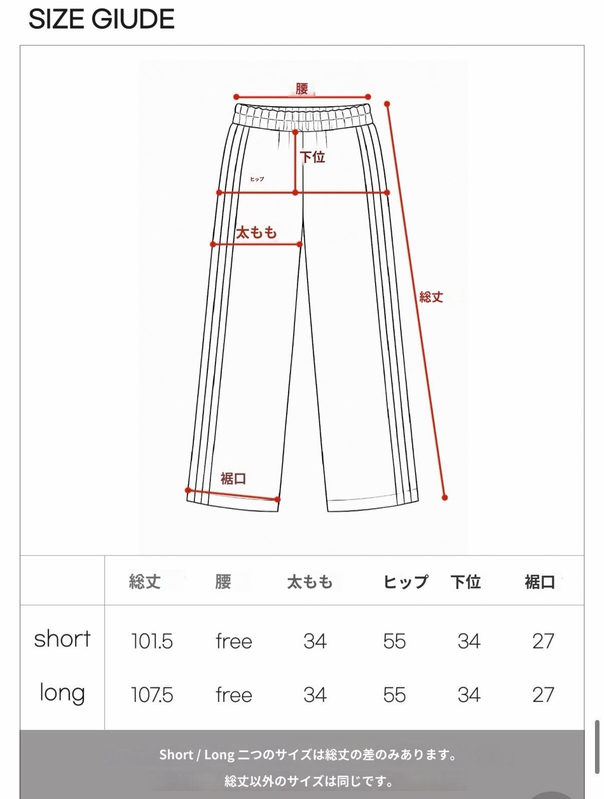 丈によってshort/long 2つのサイズの中から選択してください