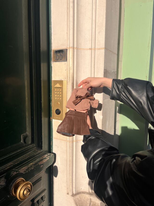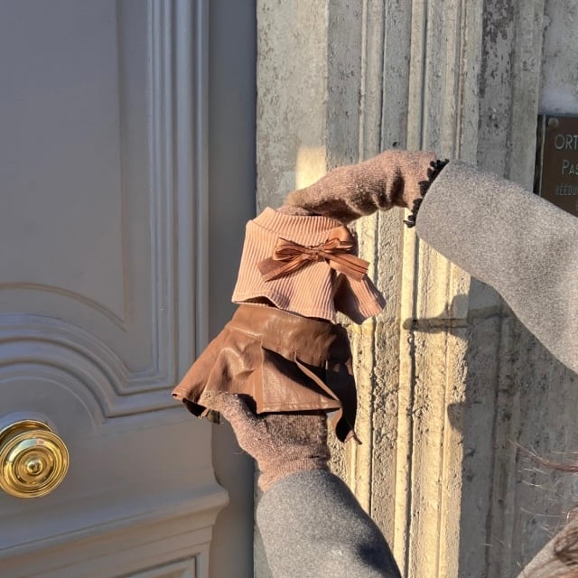 ツーピースのように見えるレザーワンピースでシックなパリジャンルックを完成してみよう