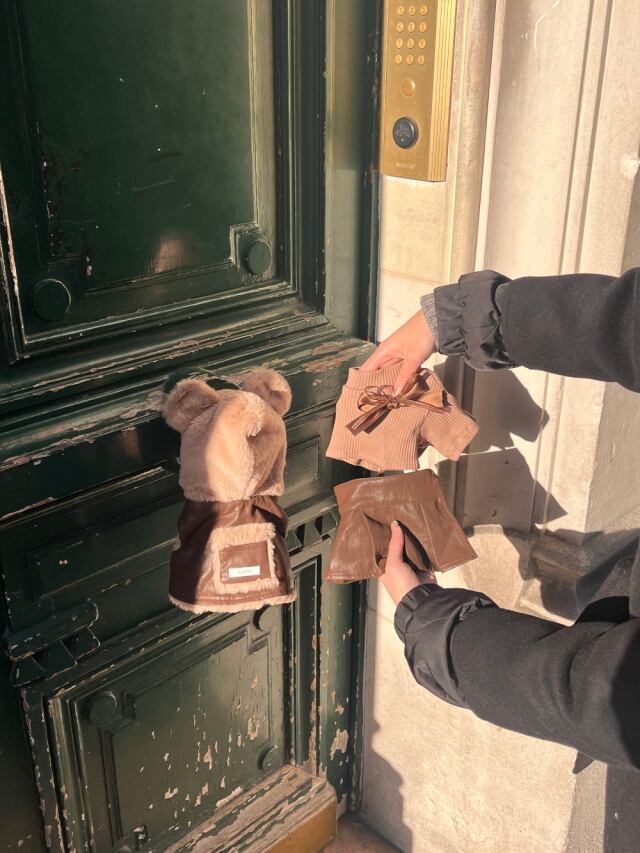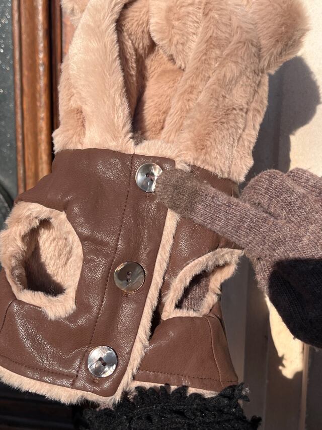 今回はハイイプシグネチャーバニー&ベアフードをレザージャケットスタイルでご用意しました。 裏地全体がエコファーで暖かく