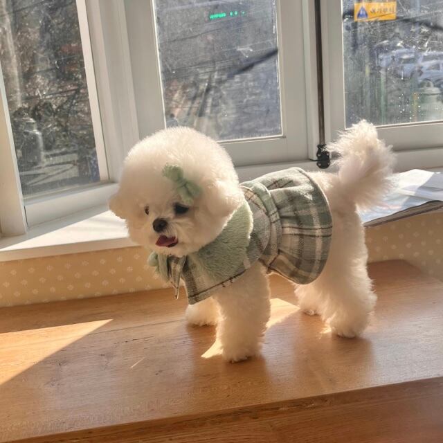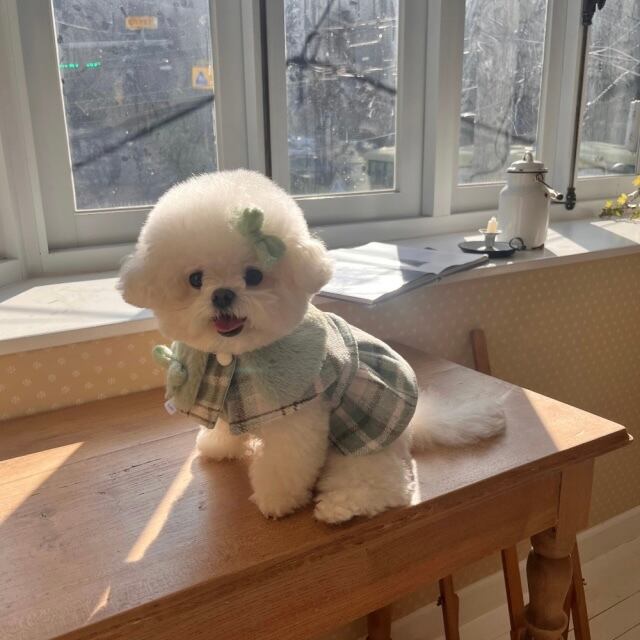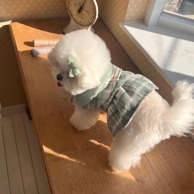 ワンピースとファーケープを一緒に着せると、温かくて端正なブレッピールックが完成!
