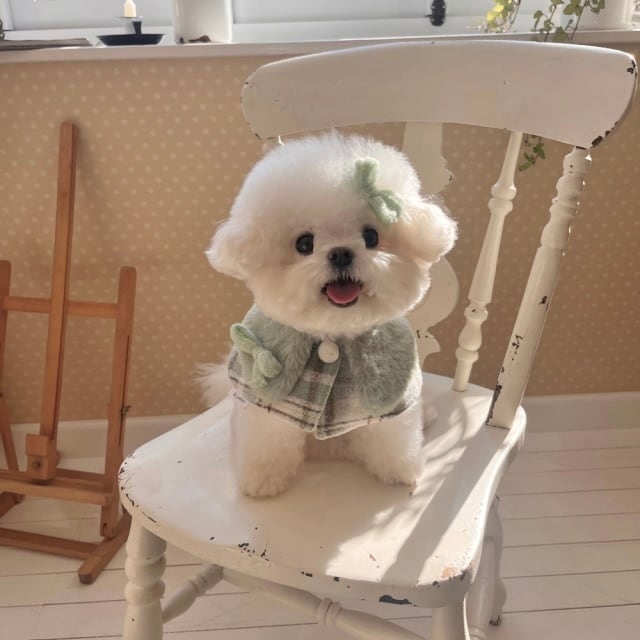 ふんわりとしたファーリボンのブローチでポイントを加えました
