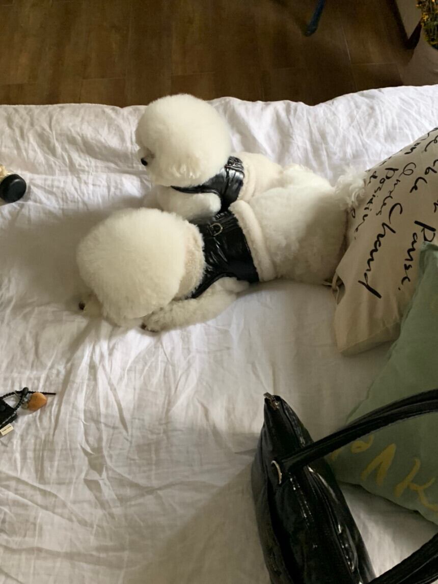 スタッフ犬/ビション2.4kg/バスト30毛量入れて32cm/首周り20/背丈27/普段SまたはSMサイズ着用/