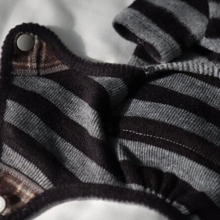 ・足を通さずに着用できるスナップボタン仕様で、着脱が簡単かつ快適な着心地