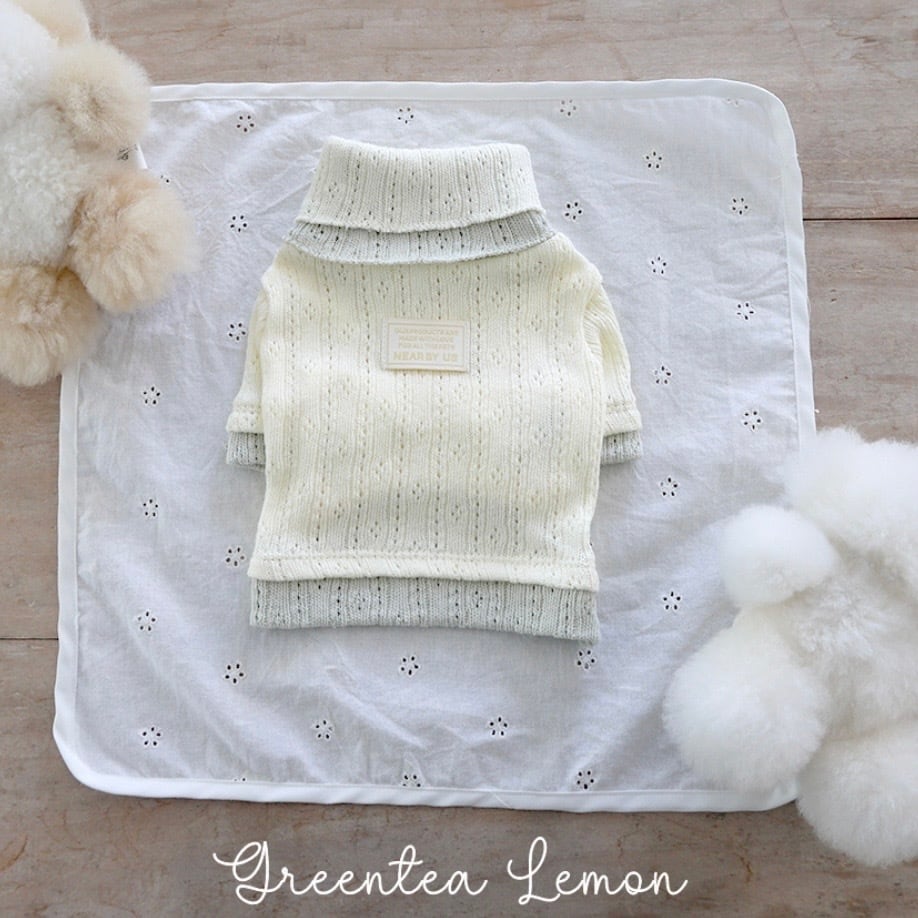 予約【near by us】pointelle knit top (greentea lemon)