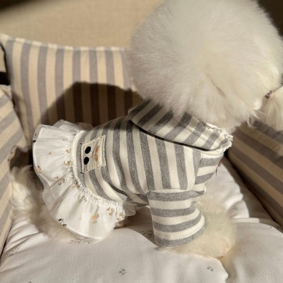 ナチュラルなグレーのストライプ柄に