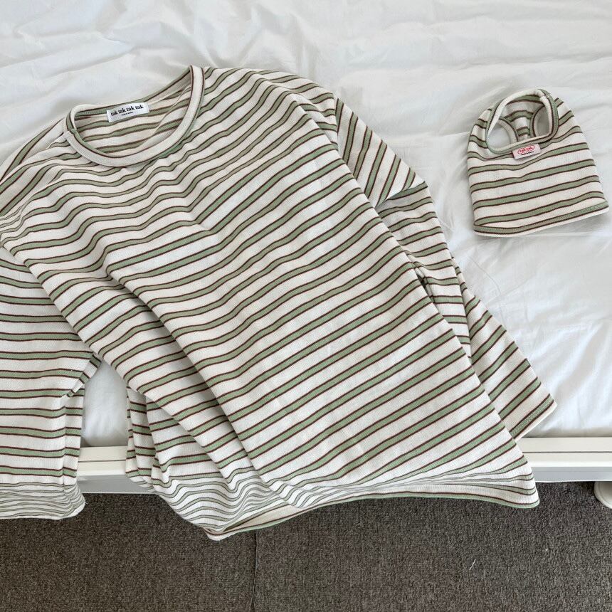予約[tak!tak!tak!tak!]nerd stripe t-shirt ( apple mint brown ) 保護者用
