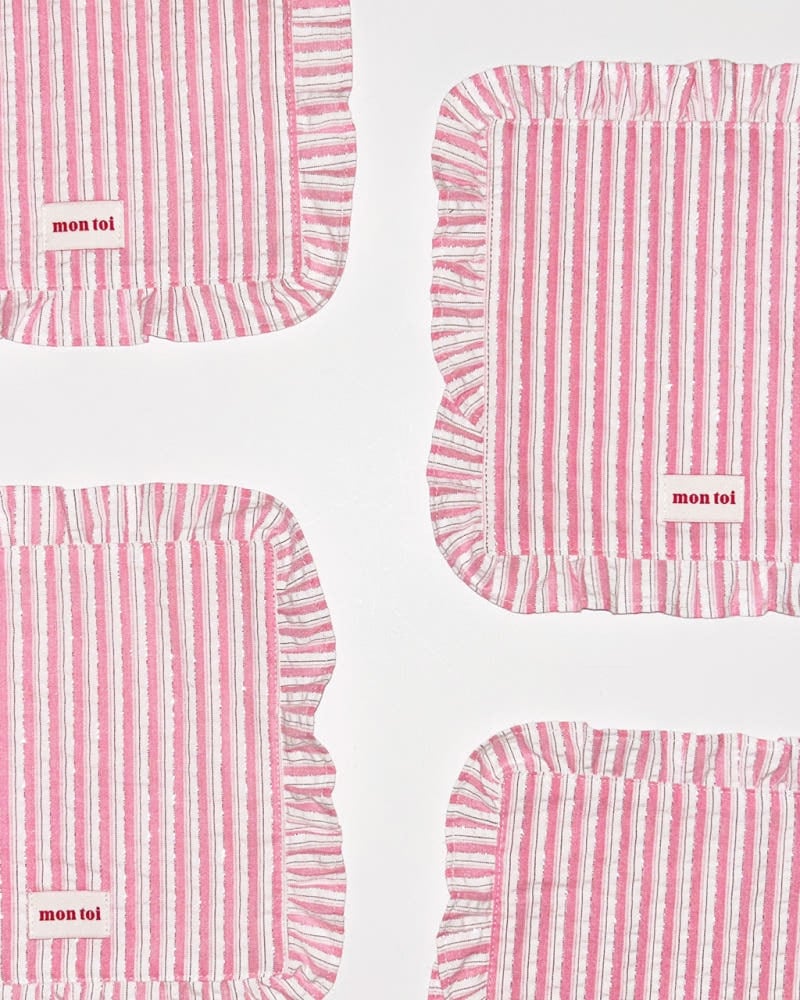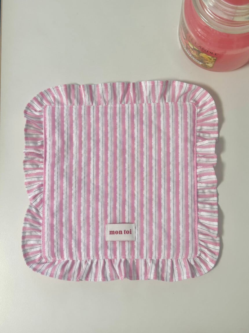即納/当店限定ブランド【mon toi】pink stripe coaster