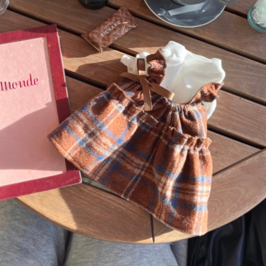 スリーブニット&スカート一体型デザインでレイヤードしたような