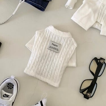 袖にはカジュアルなデニムパッチをポイントに、身頃はツイスト素材を使用してクラシックな雰囲気を演出し、ネックラインと袖はリブ素材で自然に繋がるように仕上げ、全体の完成度を高めました。