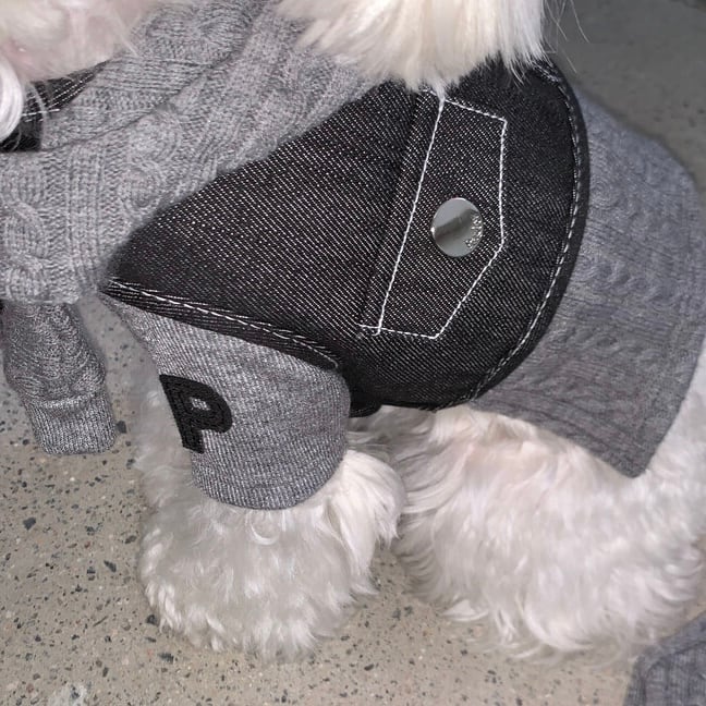袖にはカジュアルなデニムパッチをポイントに、身頃はツイスト素材を使用してクラシックな雰囲気を演出し、ネックラインと袖はリブ素材で自然に繋がるように仕上げ、全体の完成度を高めました。