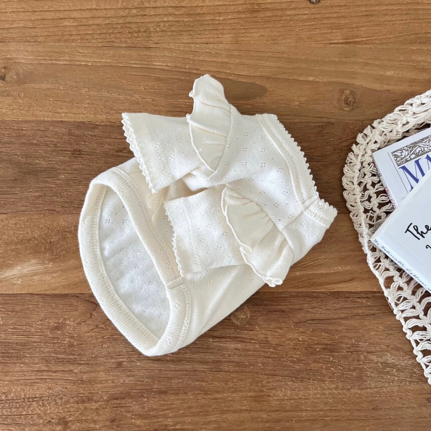 フリルとピコットディテールを施し、どの角度から見ても愛らしいです!